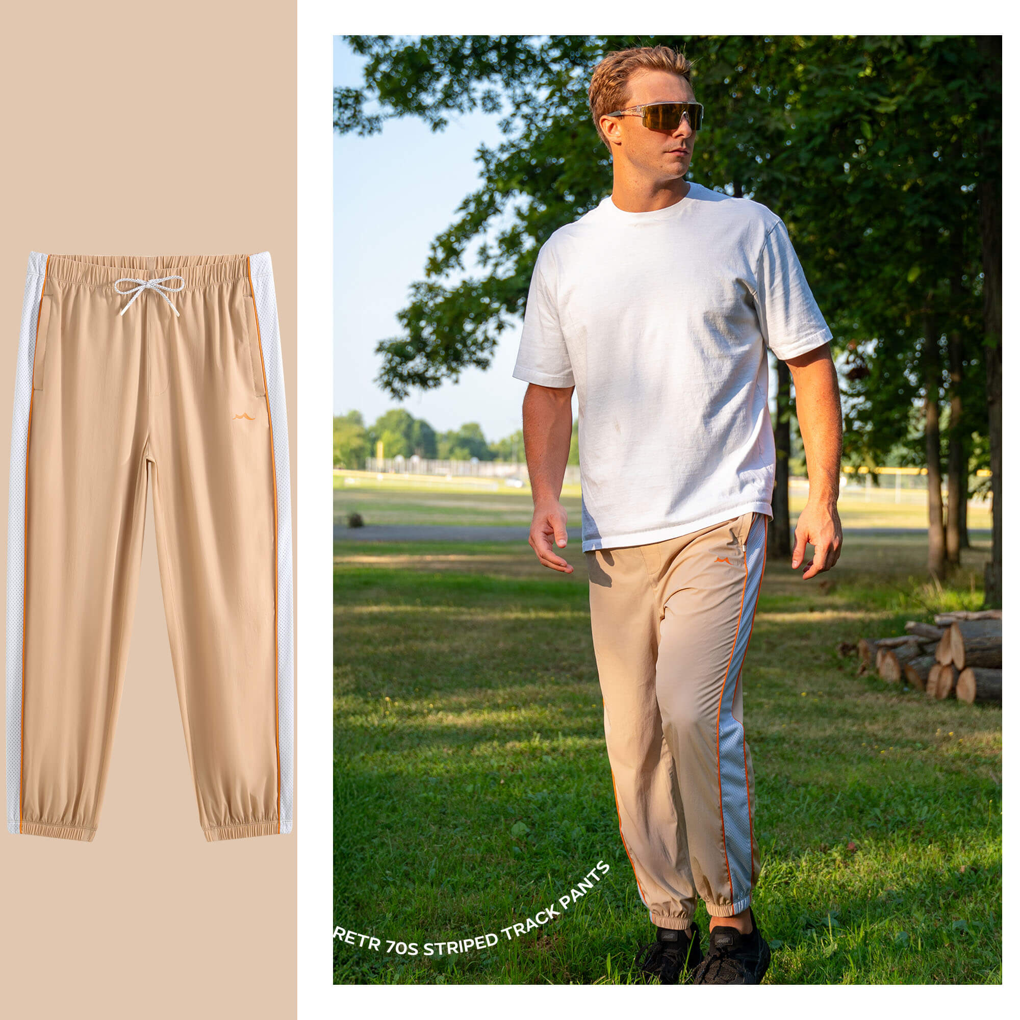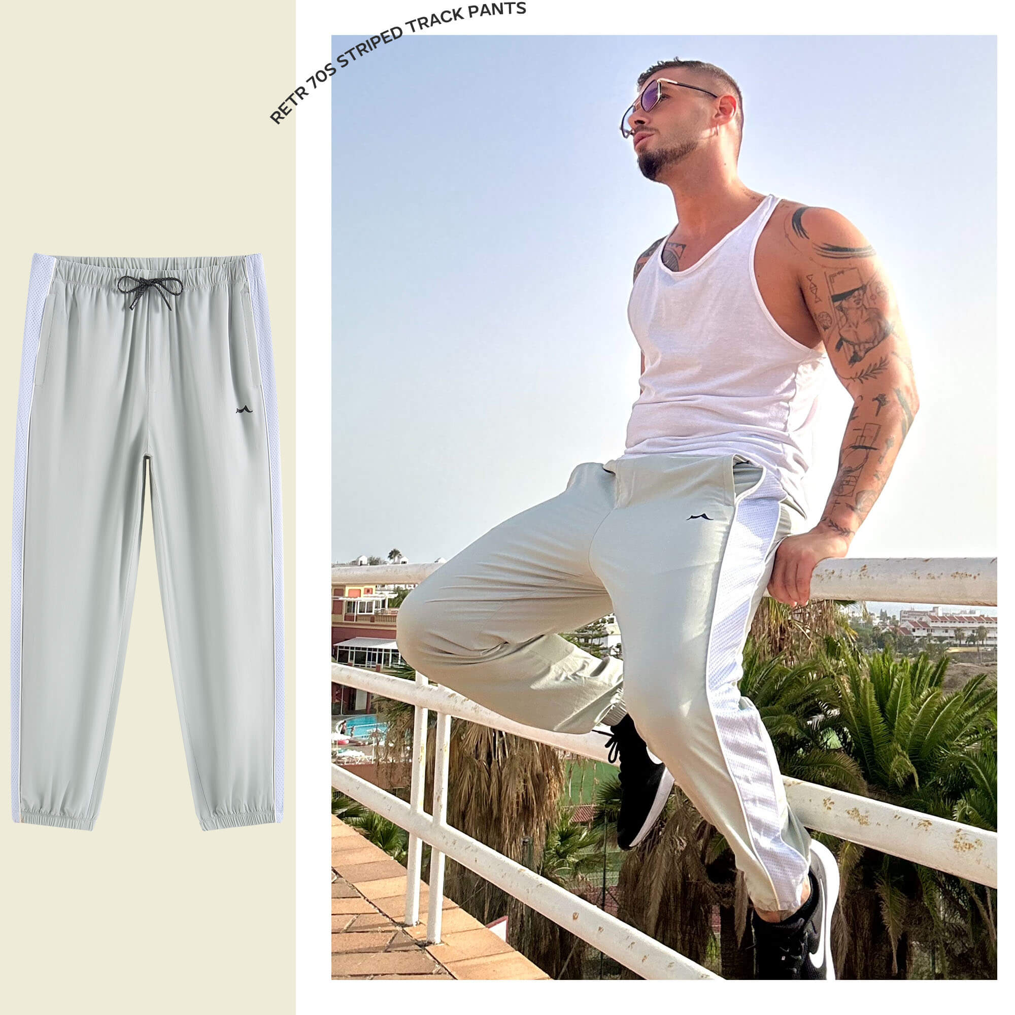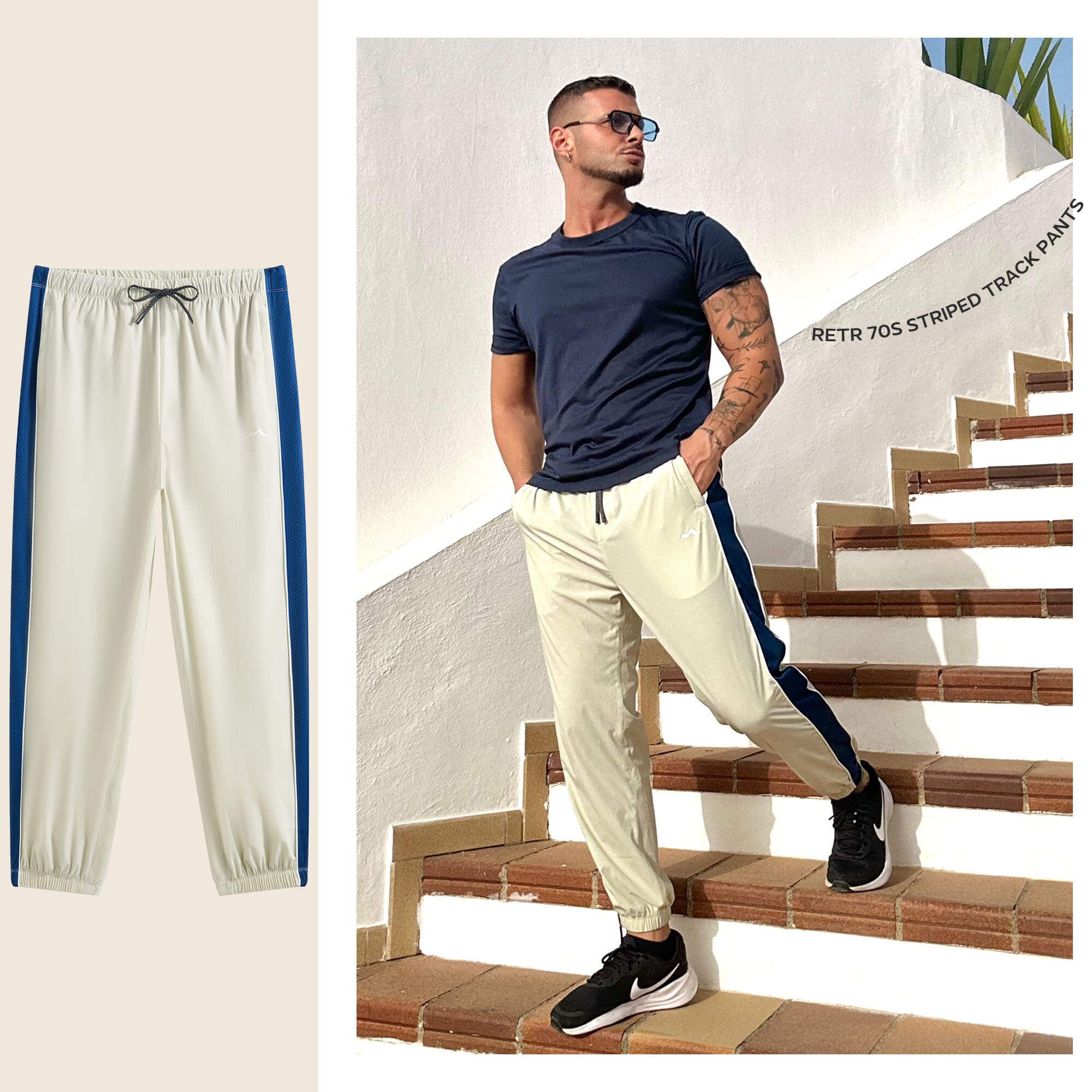 That’s why we created these pants, blending the typical retro stripes of the 70s with the practical comfort of modern urban wear. The fit is relaxed yet sharp, the fabric is breathable with just the right stretch, and the design of vintage track pants works for everything from a morning jog in the park to a casual coffee catch-up or an evening stroll under city lights.
