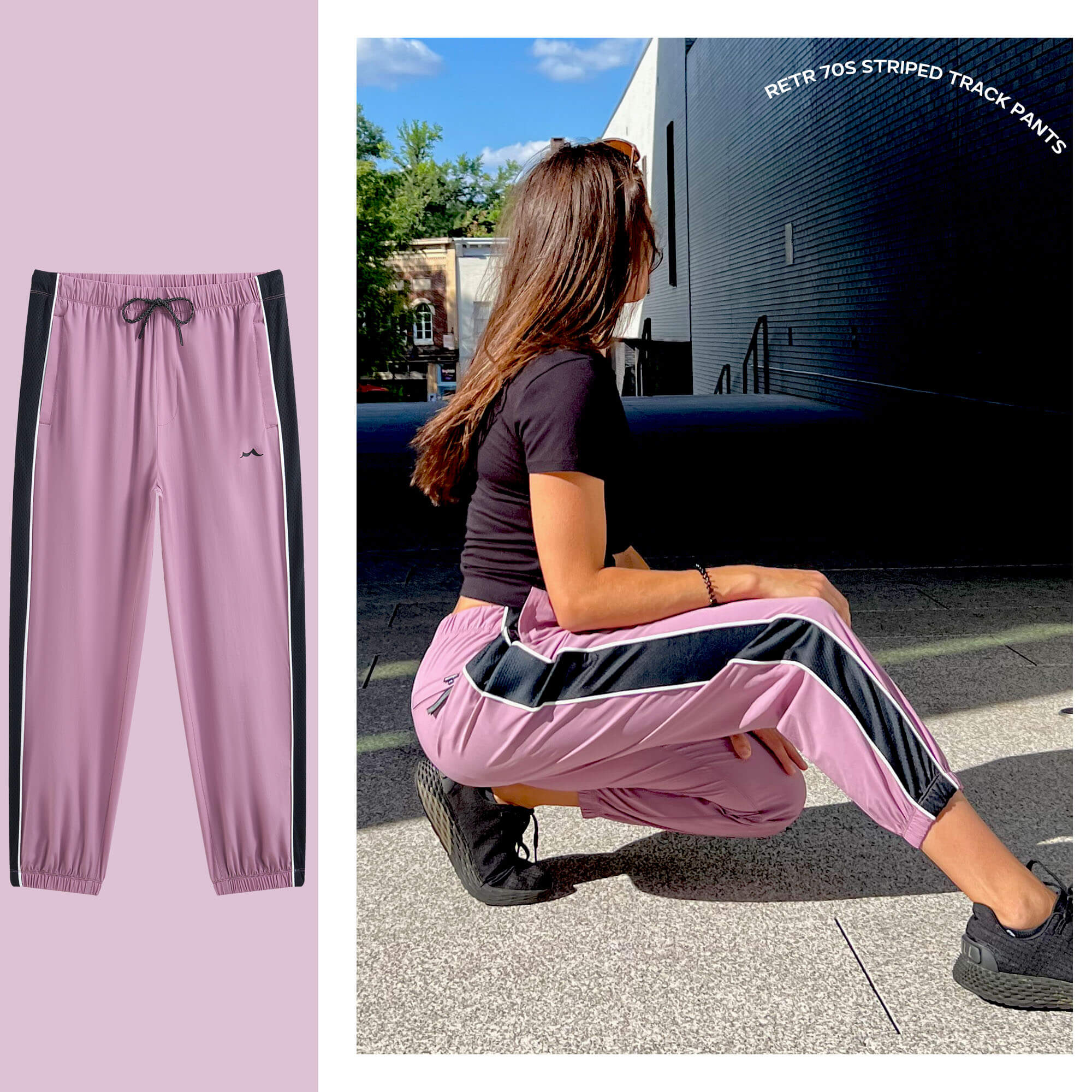 The Purple color brings a fresh, upbeat twist to classic vintage style. The rich purple base pairs with lively pink side stripes, these retro track pants offer a look that’s bold, fun, and full of personality. Perfect for days when you want your outfit to stand out and your style to speak for itself.