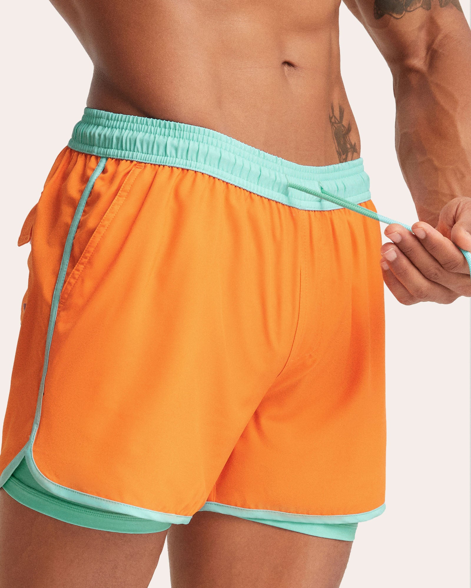 4.5-inch Men's swim trunks, featuring retro color-blocking inspired by '70s and '80s sporty vibes. The 2-in-1 design includes a soft inner compression liner for extra support and protection. Enjoy all-day comfort and bold vintage style for every beach adventure.