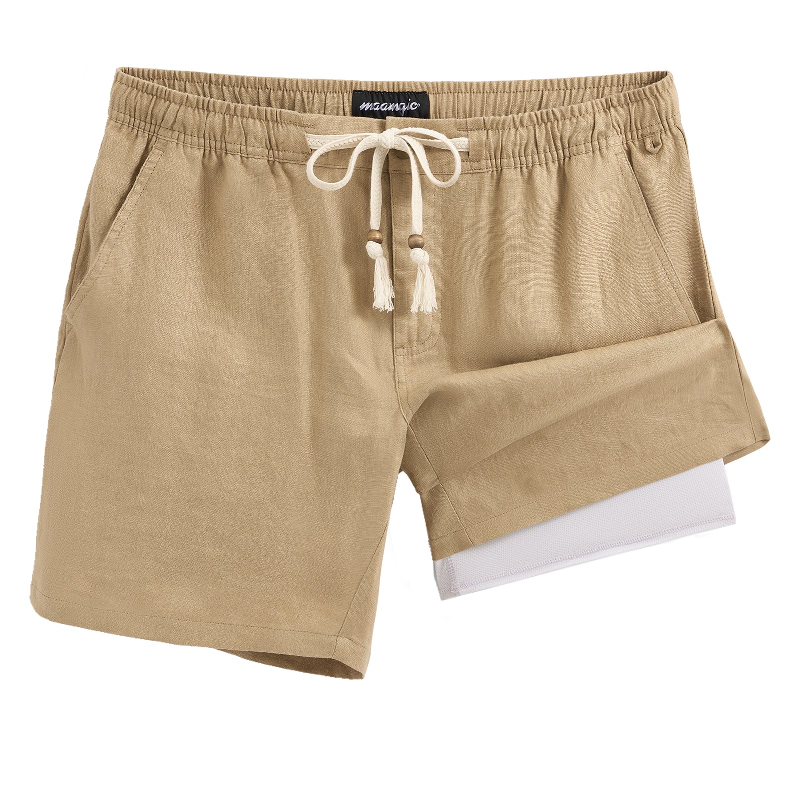PureLoom 7 inch Linen Shorts combine breathable 100% linen fabric with a relaxed 2-in-1 design, offering cool comfort and effortless style for summer lounging, weekend strolls, and laid-back vacation days.