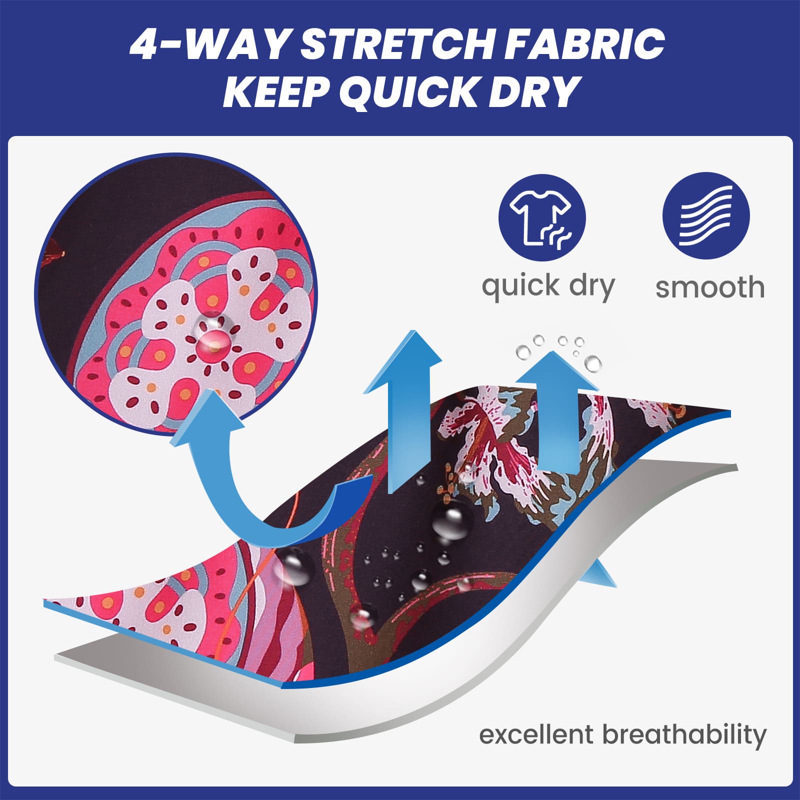 - 4-Way Stretch Fabric: Made from a 93% Polyester + 7% Spandex blend for comfort and flexibility