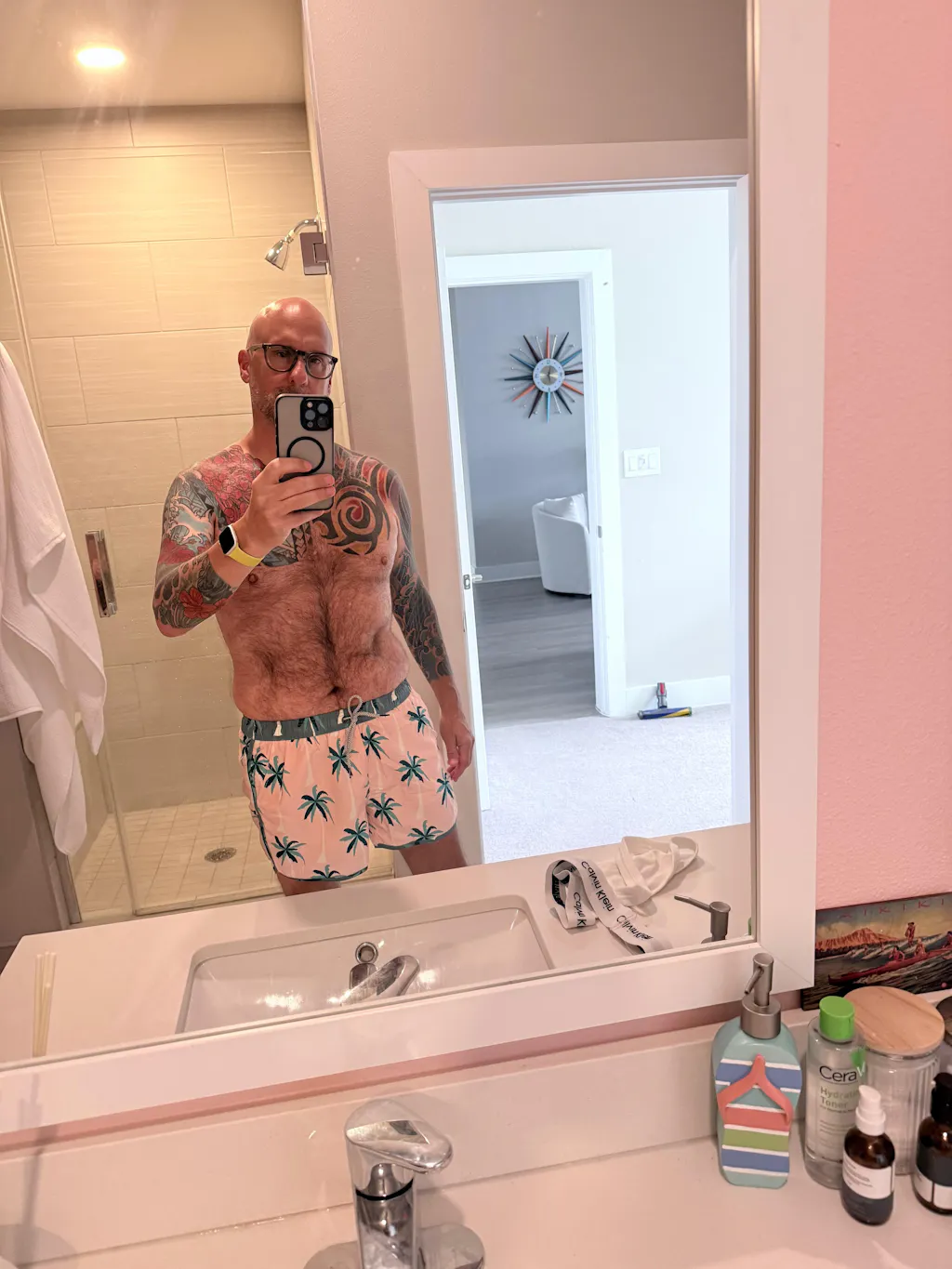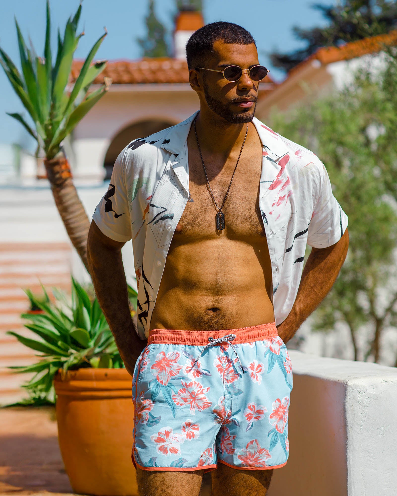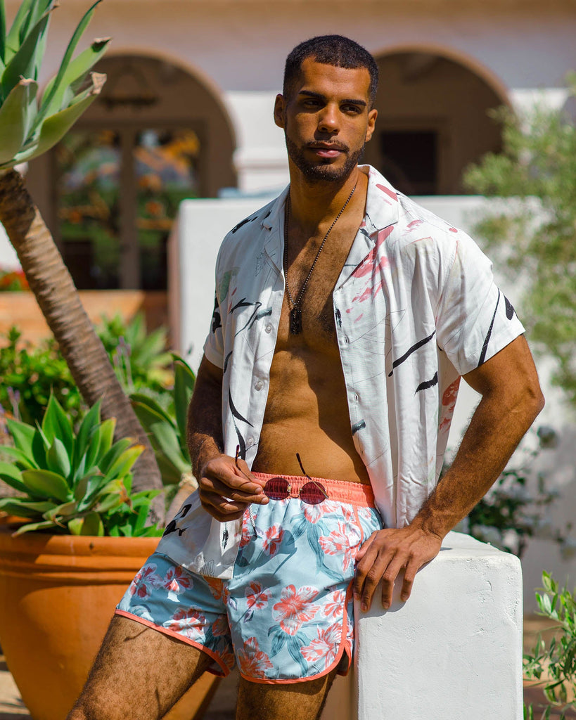 ChinoWave Pink Flowers Swim Trunks