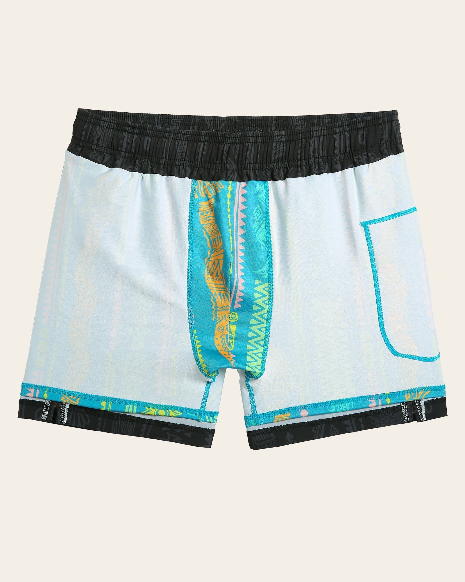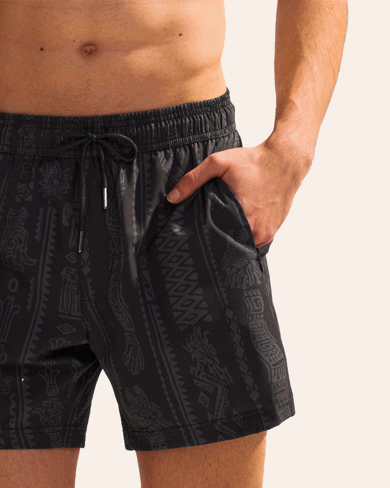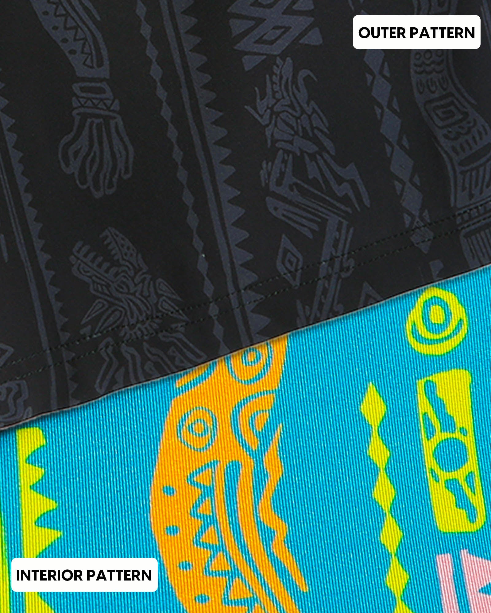 The TribalTime Aztec Dragon Swim Trunks are made from lightweight, quick-drying fabric for all-day comfort. They feature a bold tribal design that adds a unique touch to your beachwear. Perfect for swimming, sunbathing, or any water adventure.