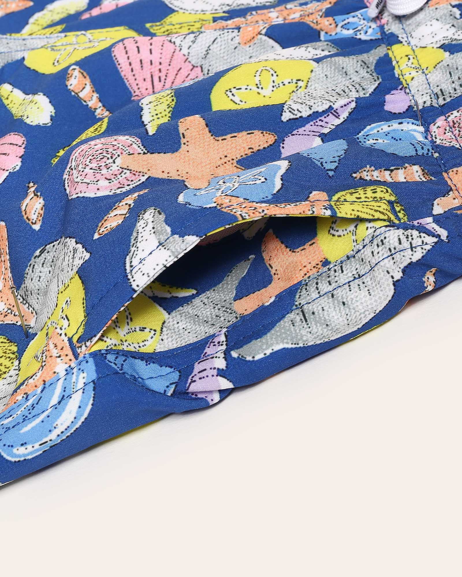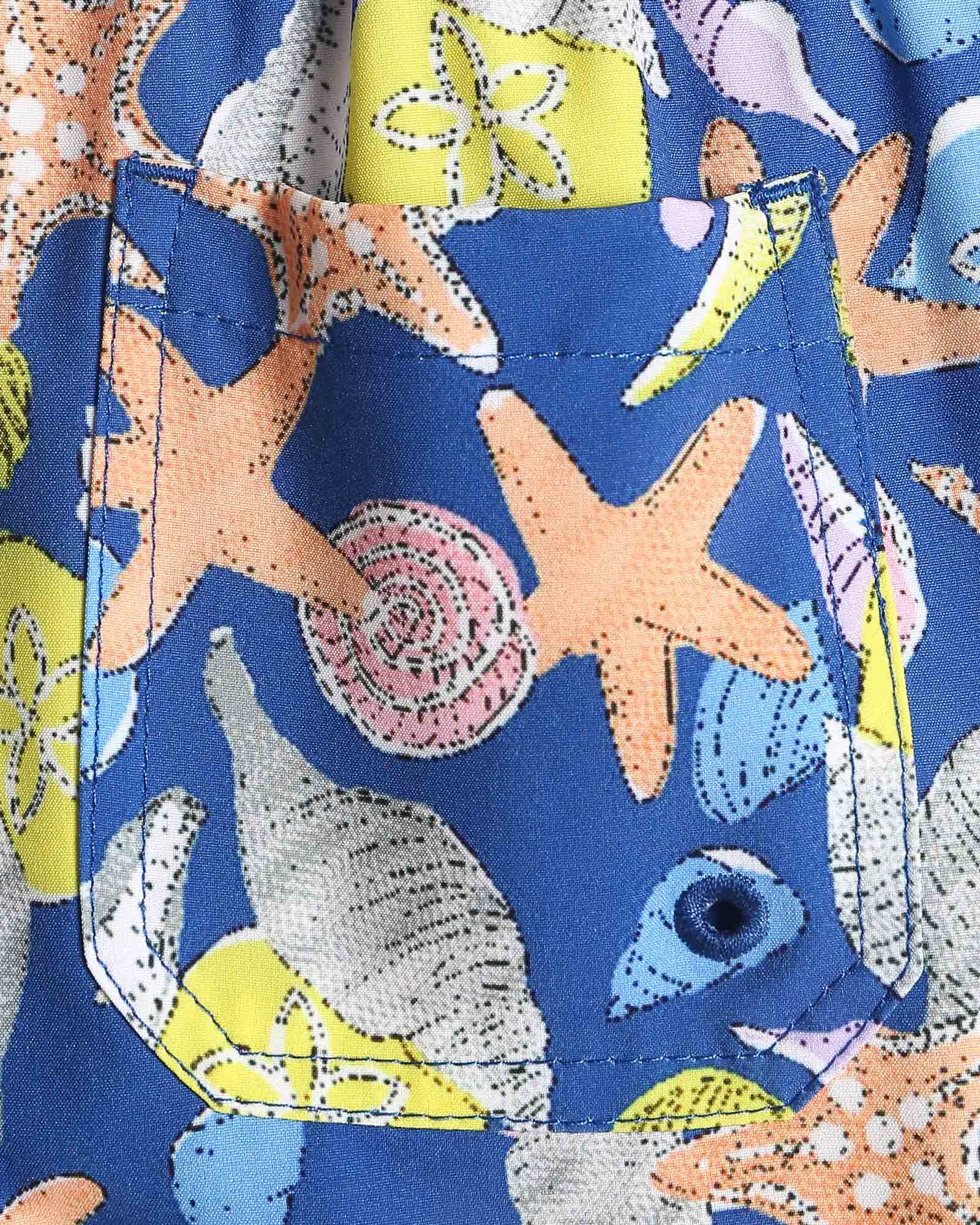 SunSand Kids Starfish Swim Trunks feature a cute starfish print, bringing a touch of the ocean to their summer style. Made from quick-drying fabric, they’re perfect for beach days, poolside fun, or any water-filled adventure.