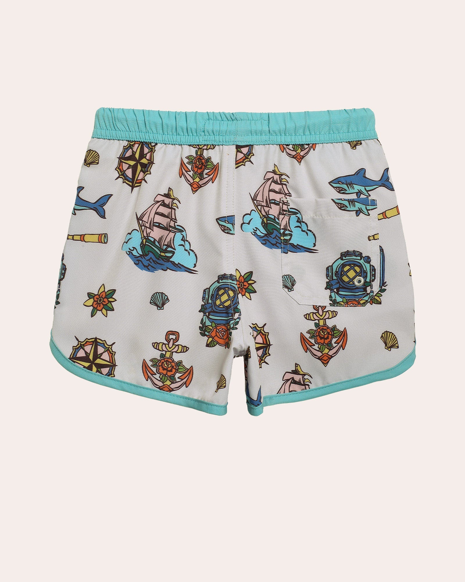 Seaborn Kids Voyage Printed Swim Trunks feature a vibrant, travel-inspired print, perfect for little explorers. Made from stretchy, quick-drying fabric, they’re ideal for beach adventures, poolside fun, or any sunny outdoor activity.