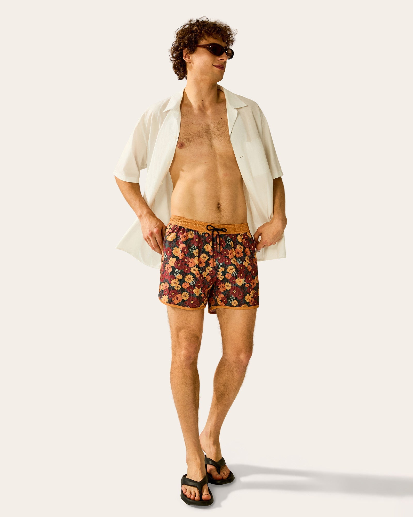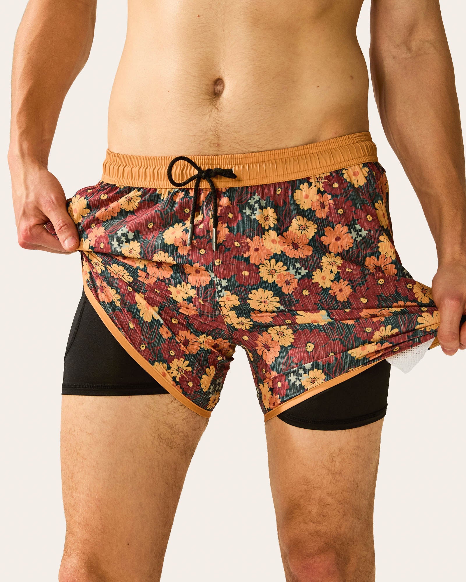 Exude effortless elegance with our 4.5" beach shorts. Featuring a vintage floral and an upgraded compression liner for anti-chafe support, they offer a seamless transition from poolside lounging to evening drinks. A premium staple for your next getaway.