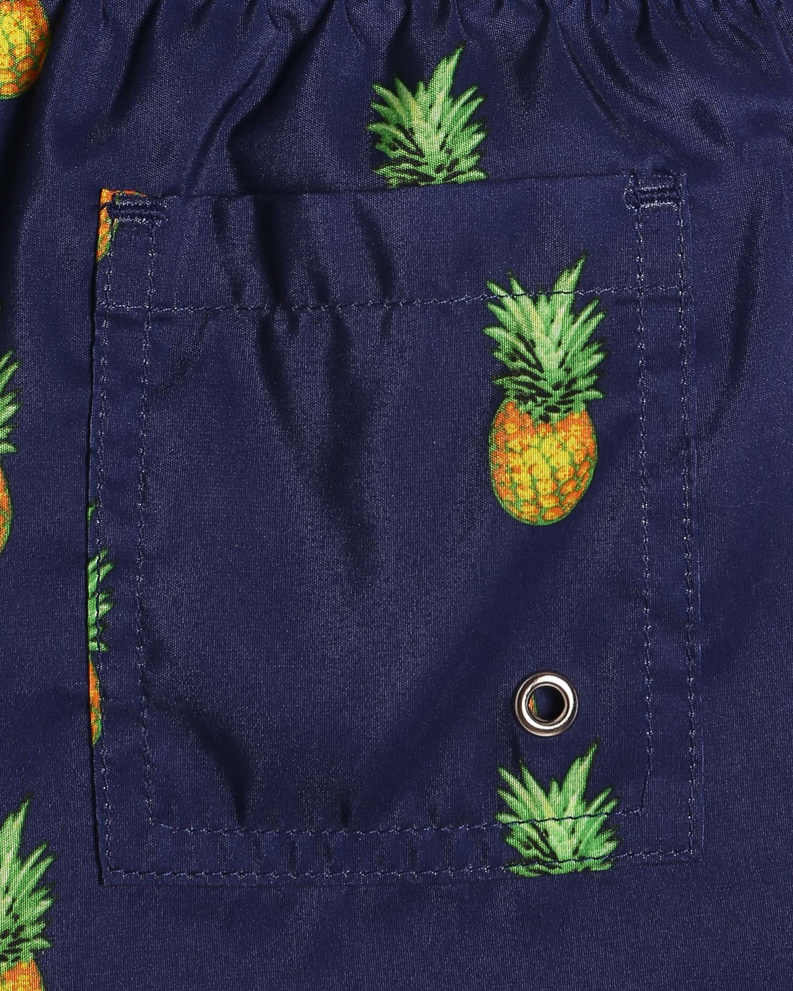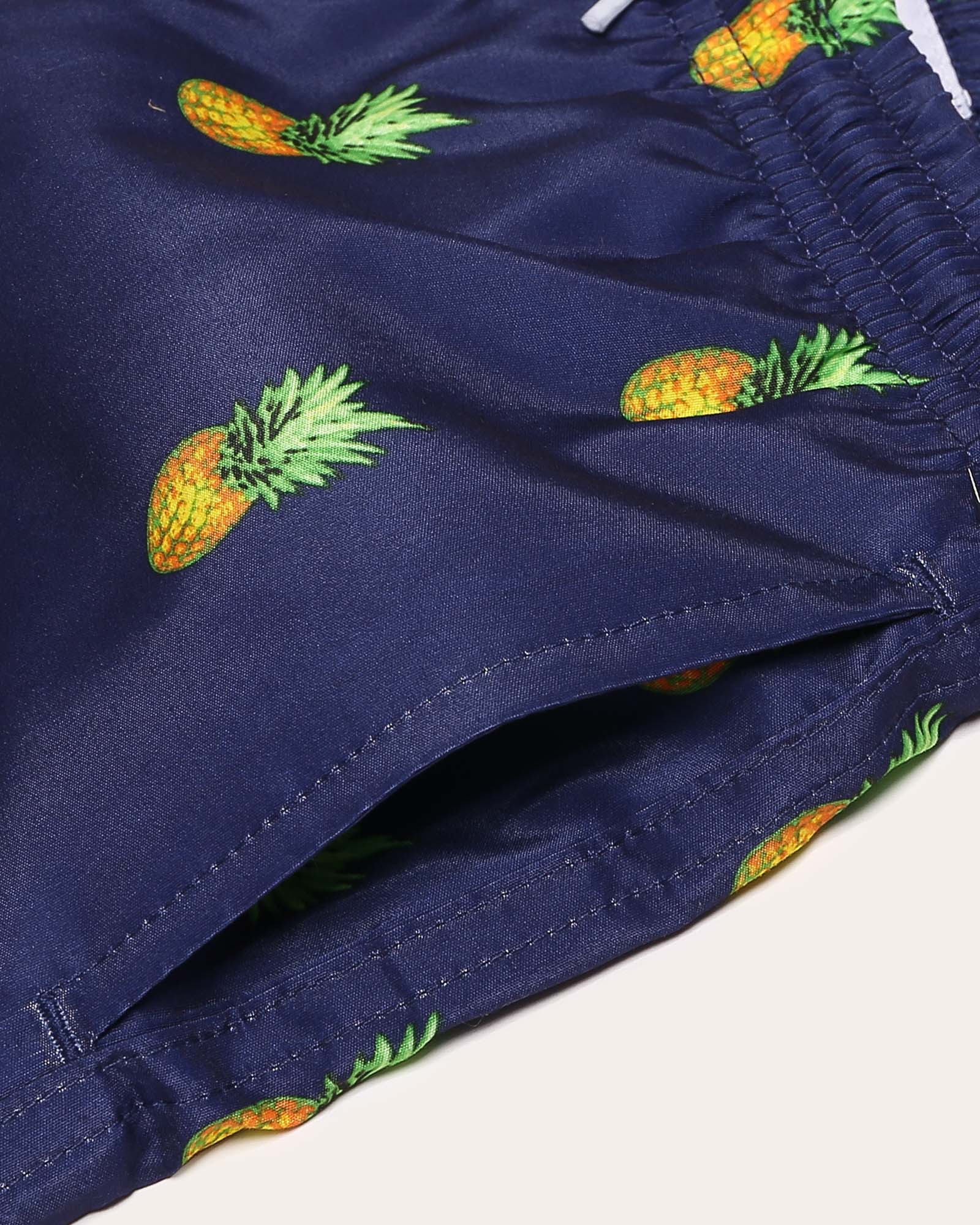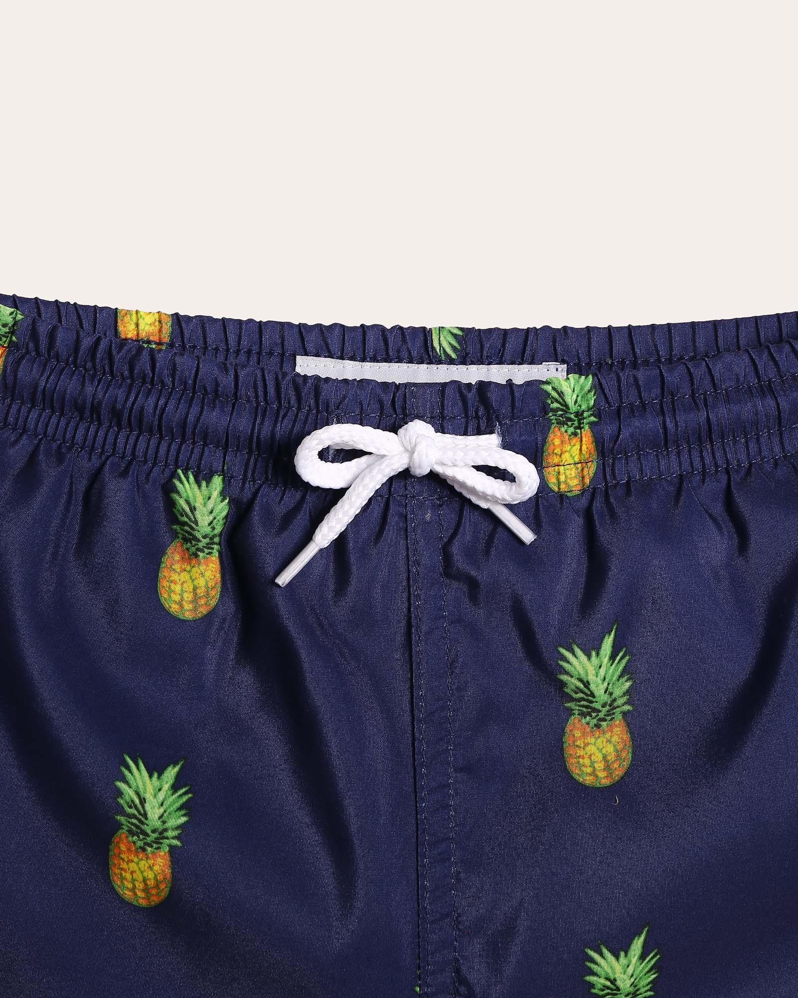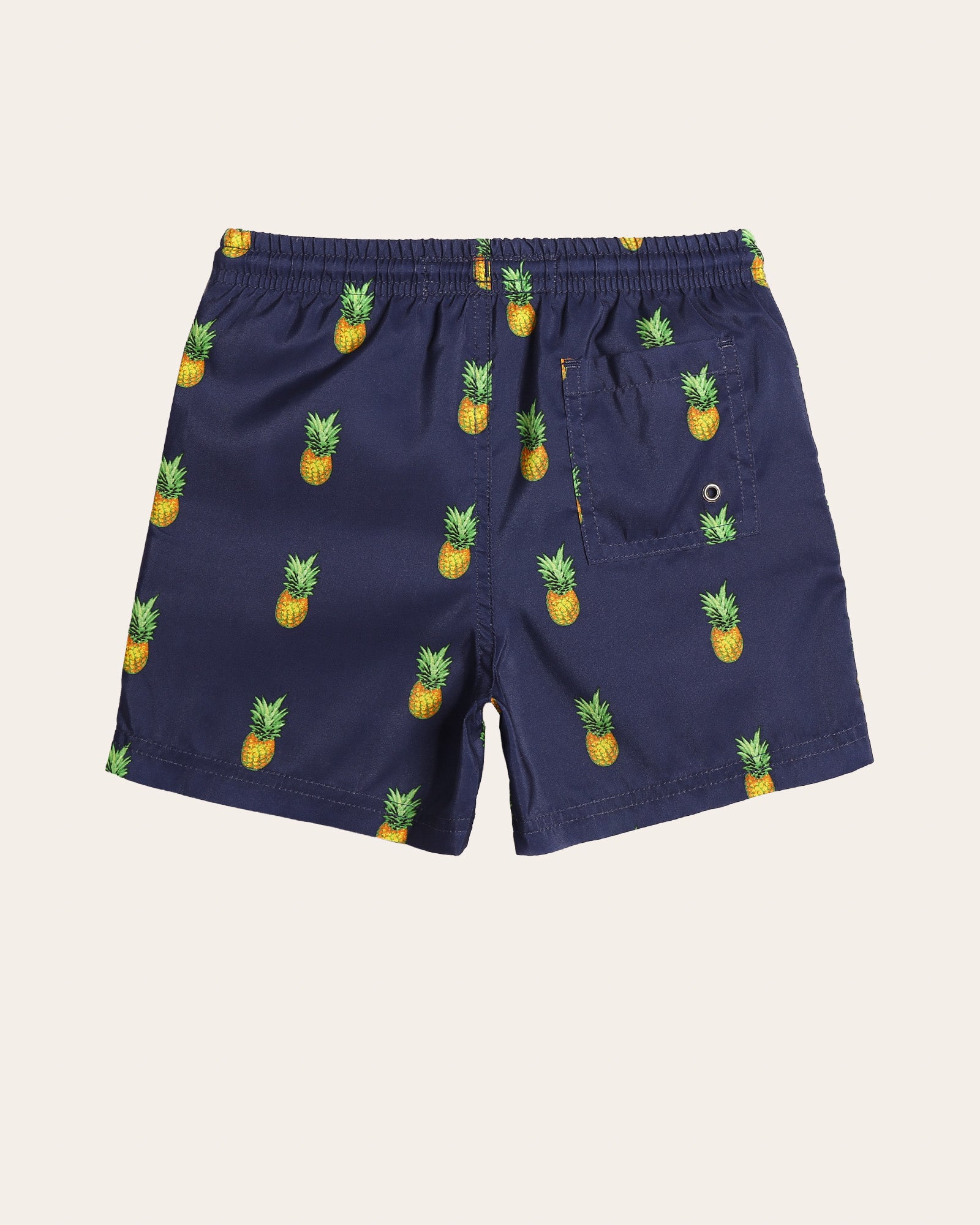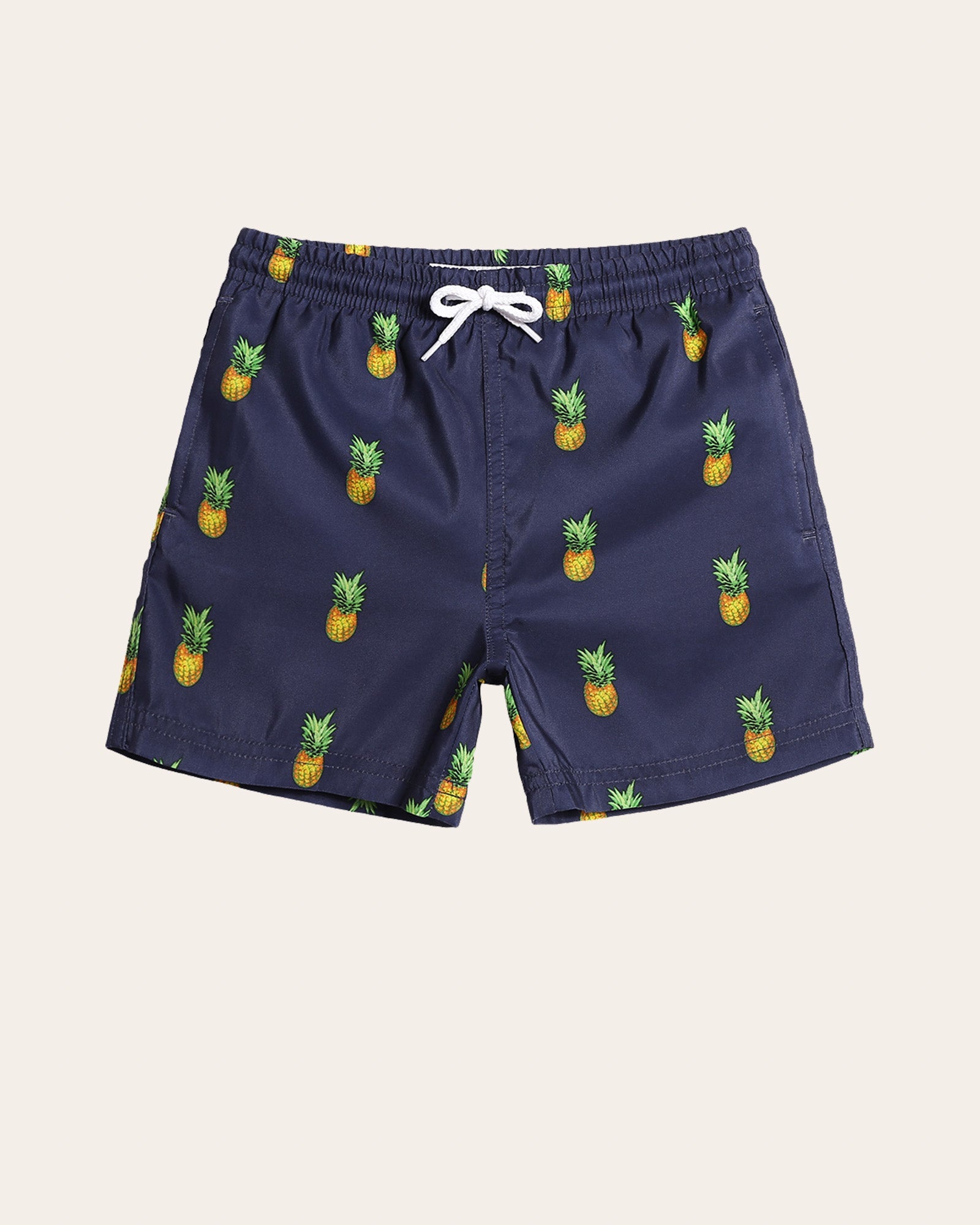 BeachBliss Kids Pineapple Swim Trunks feature a vibrant pineapple print, adding a tropical touch to your child's summer fun. Made from quick-drying fabric, they’re perfect for beach days, poolside play, or any sunny outdoor adventure.