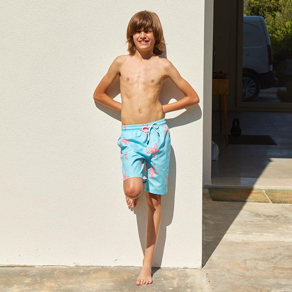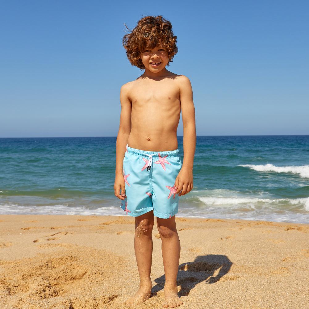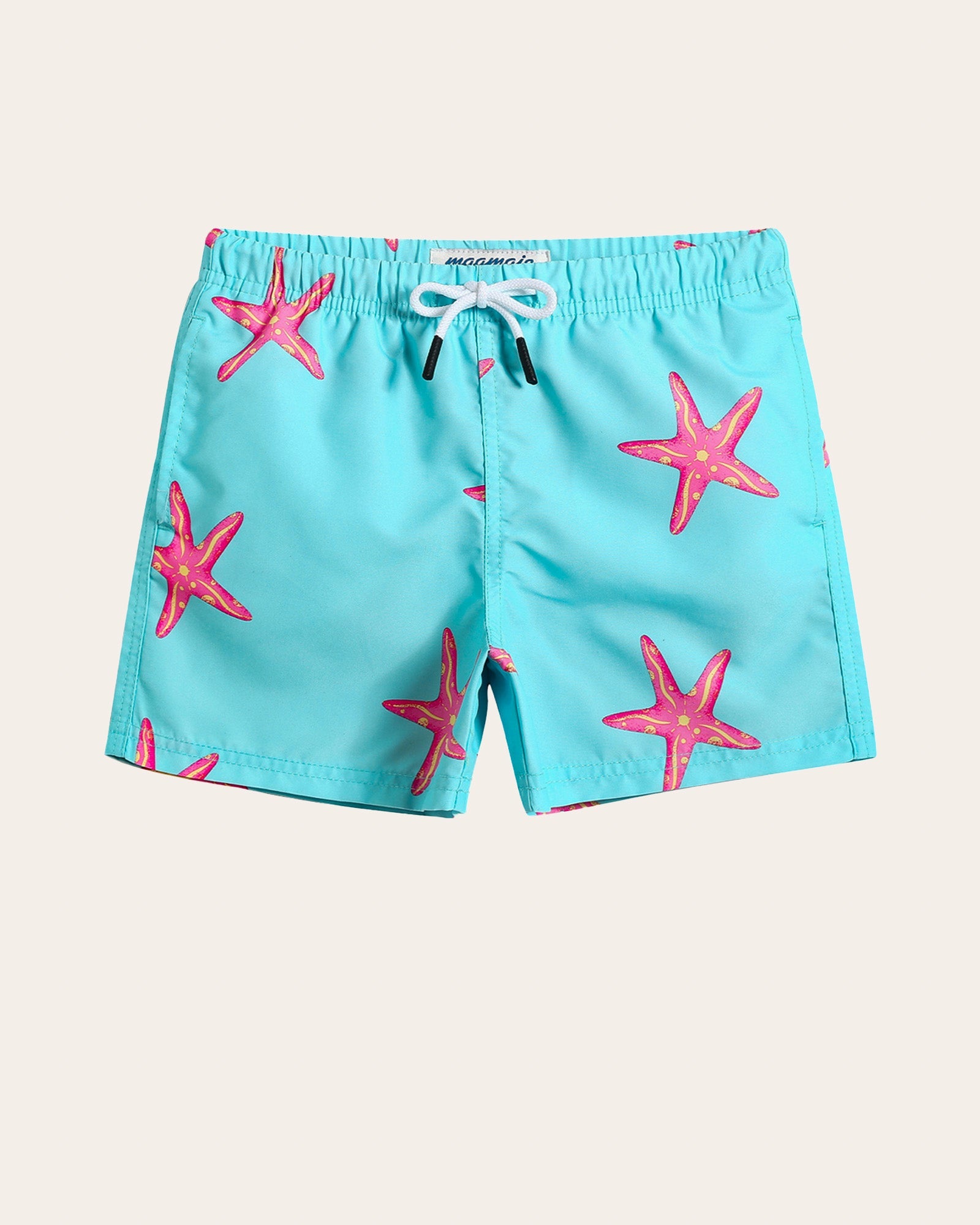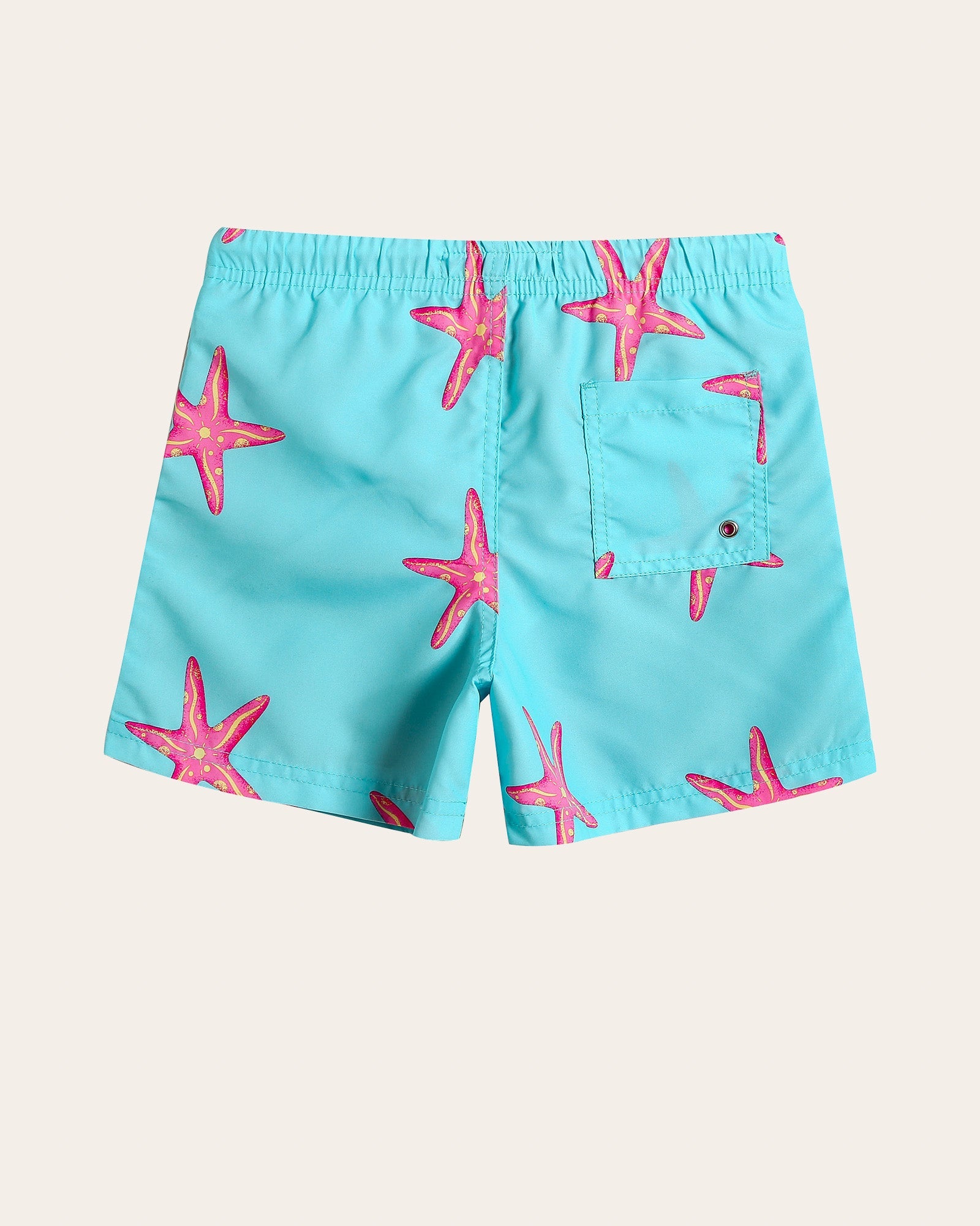 BeachBliss Kids Fishstar Swim Trunks feature a playful fish and star print, perfect for little adventurers. Made from quick-drying fabric, they’re ideal for beach days, pool fun, or any outdoor water activity, adding a fun, nautical twist to summer!