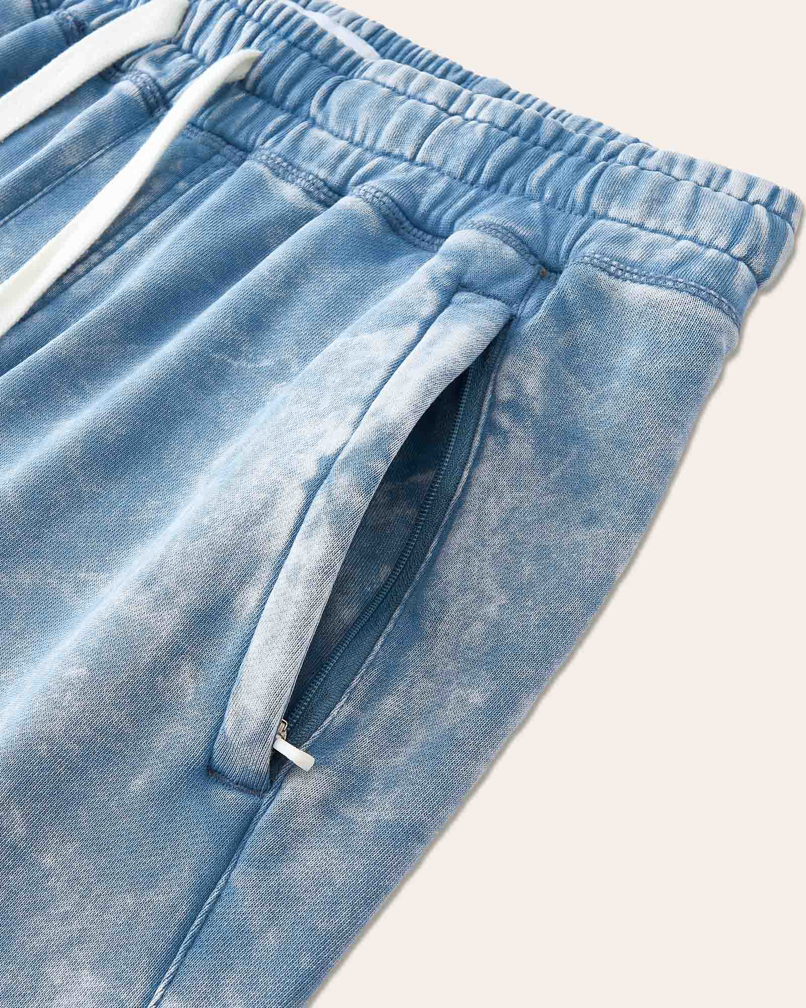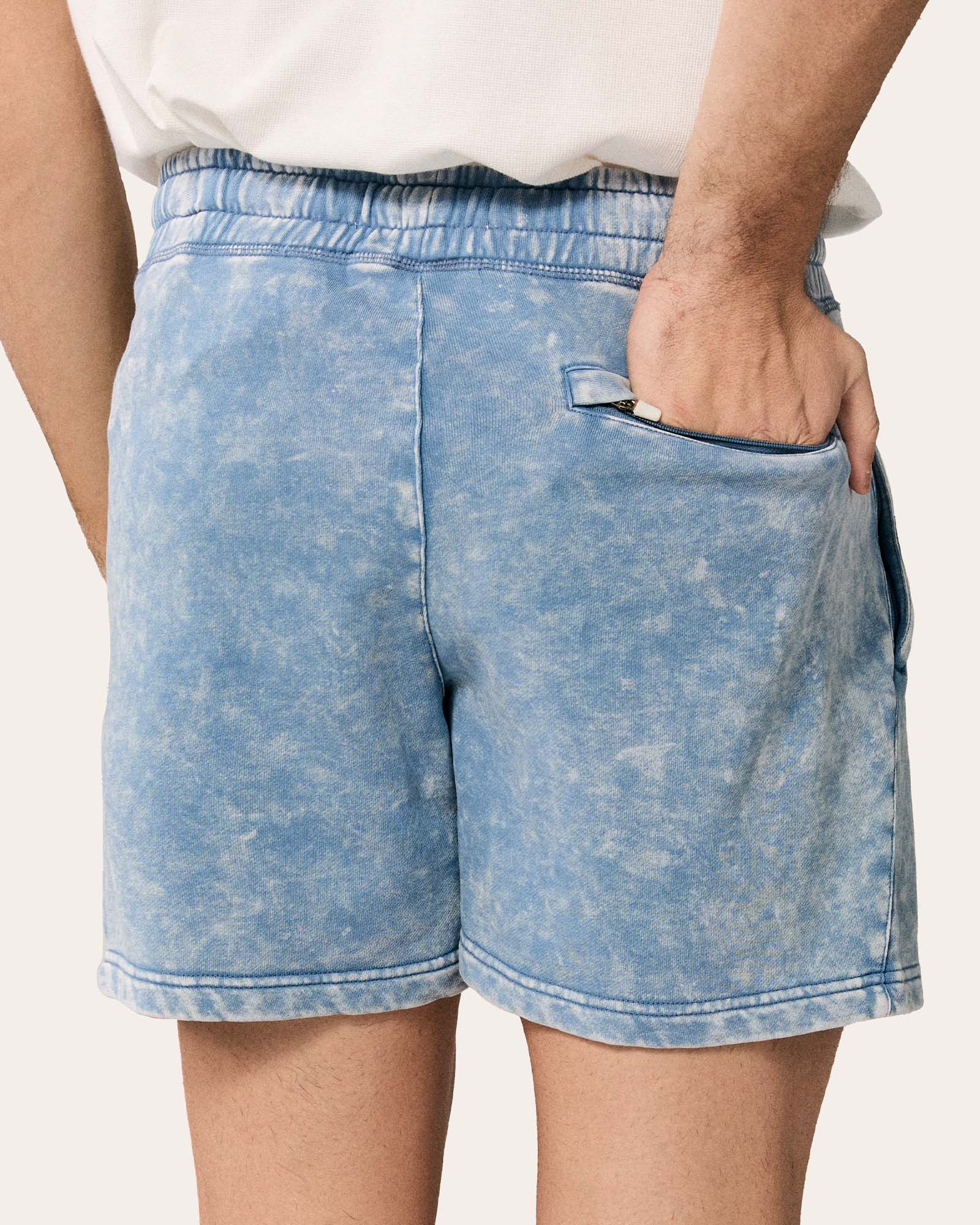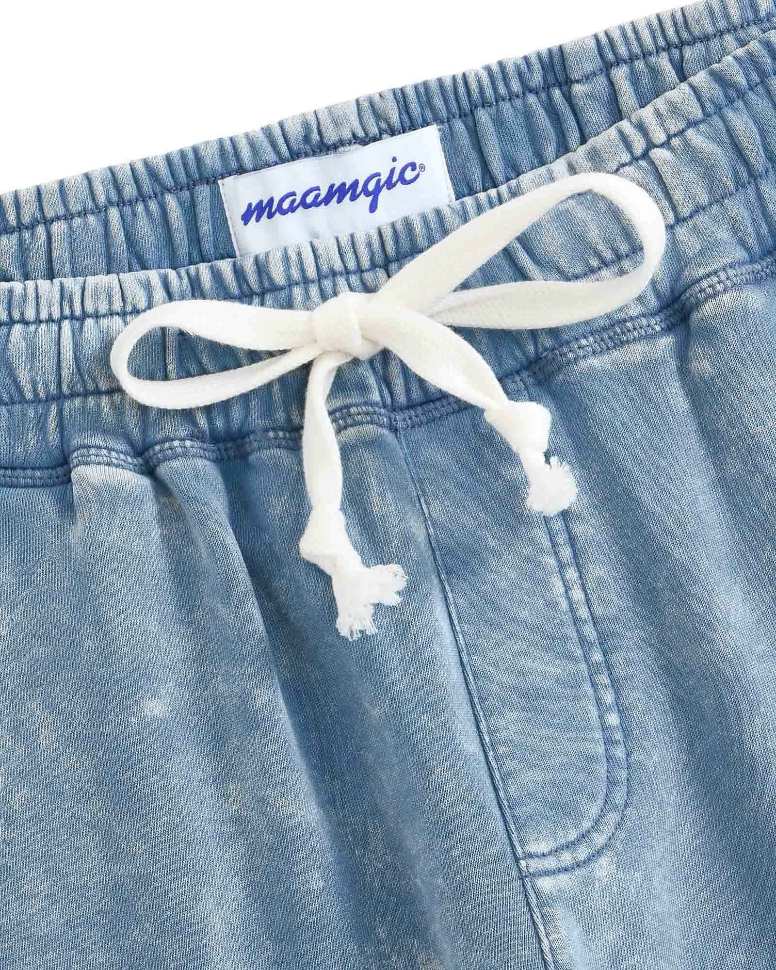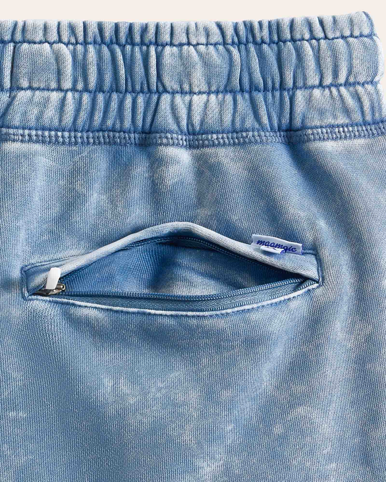 The Maamgic KnitCozy II Blue Sweat Shorts offer a refreshing mineral wash look in a breathable terry knit blend. These blue knit shorts feature an adjustable drawstring and zippered storage, ensuring a secure, custom fit from beach trips to backyard hangouts without losing your essentials.