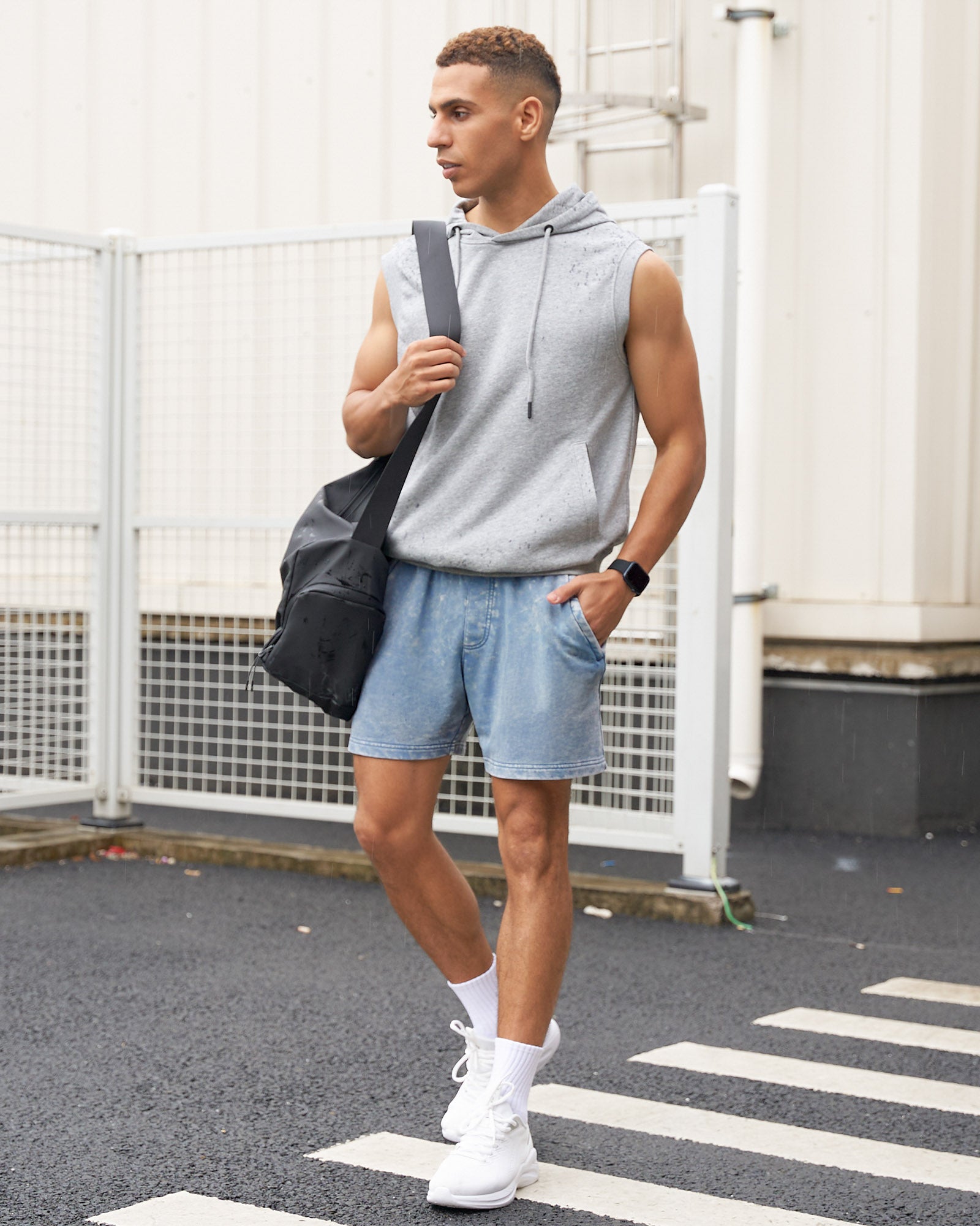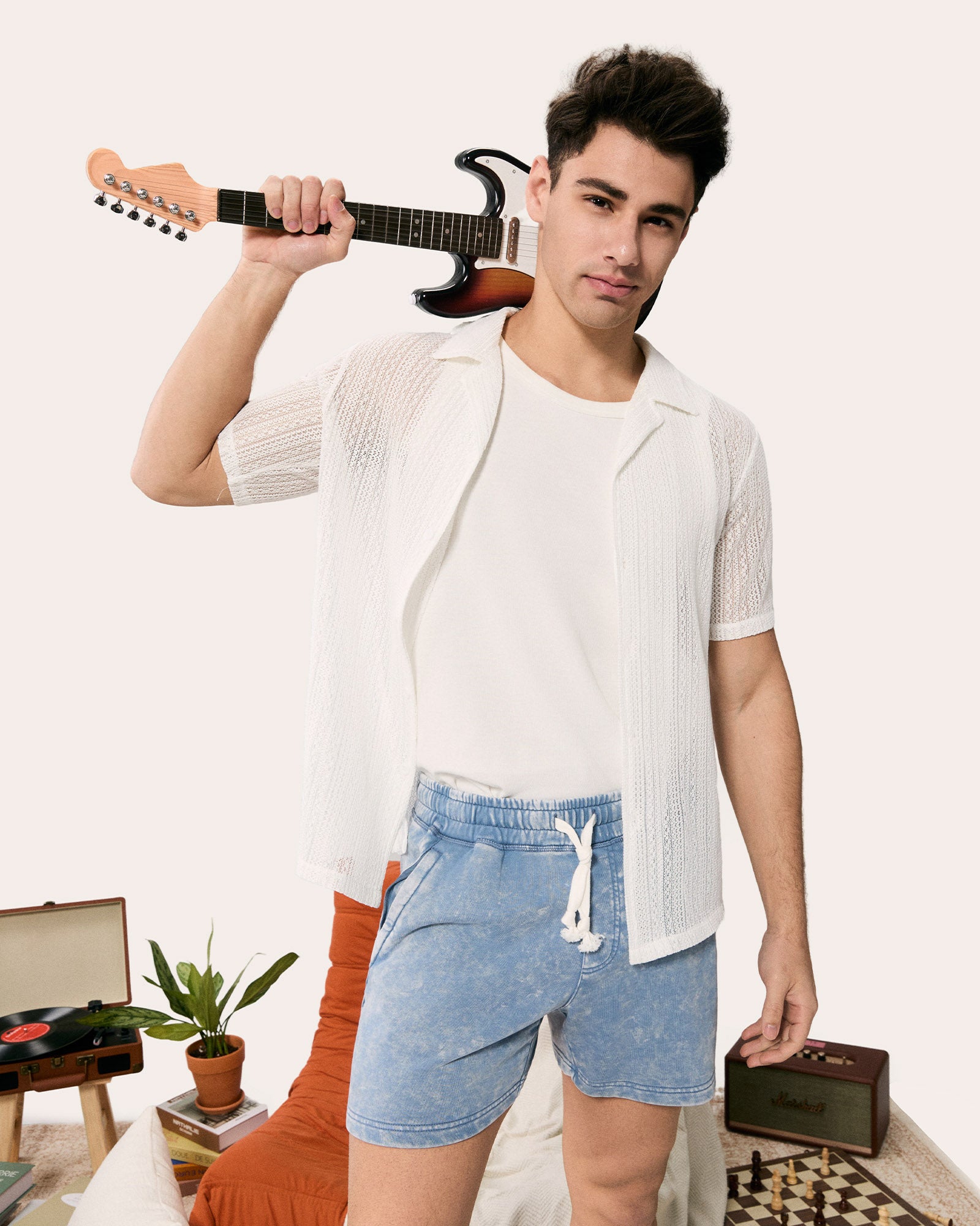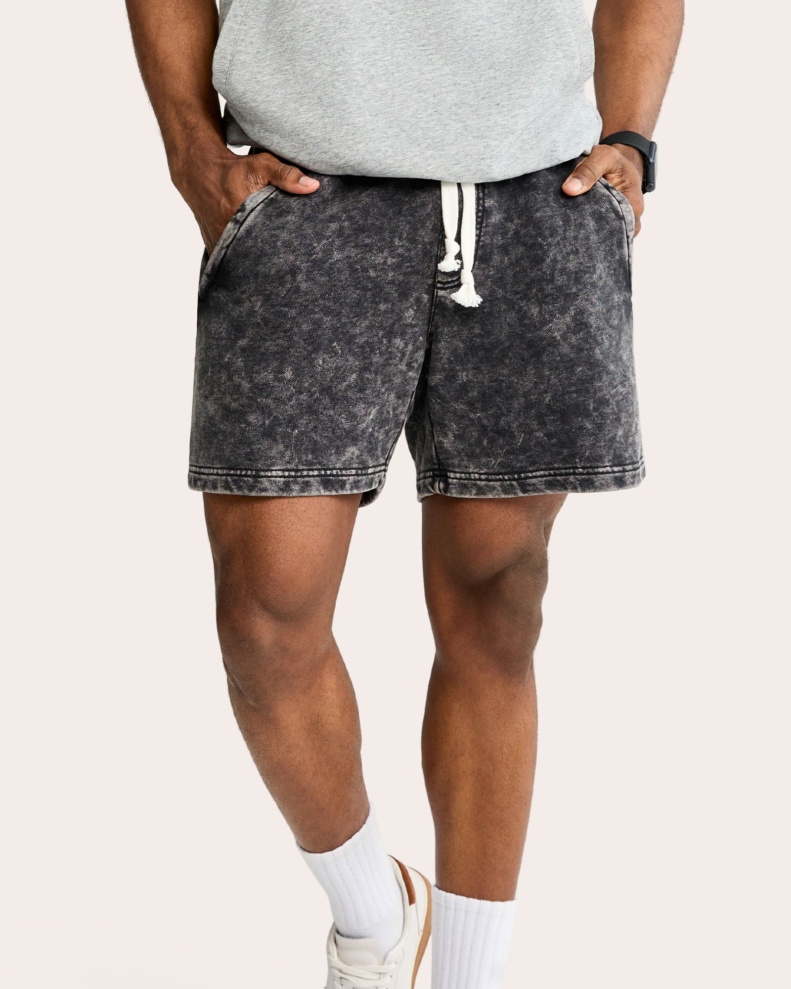 - Vintage Knit Shorts Style:ย Unique acid wash knit shorts finish for a retro, premium look.