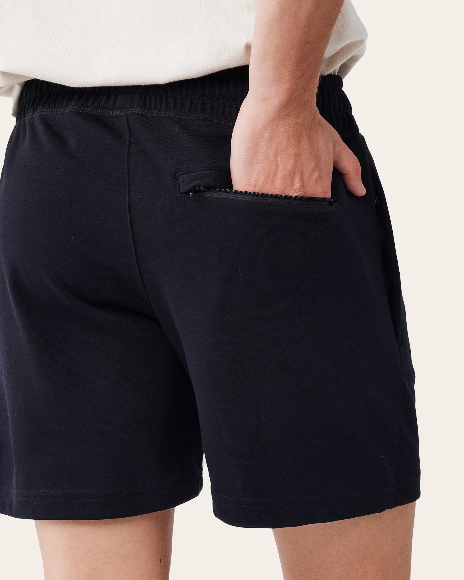 KnitCozy Soft Black Sweat Shorts offer soft, breathable comfort with a simple, versatile design—ideal for lounging, working, or outdoor fun.