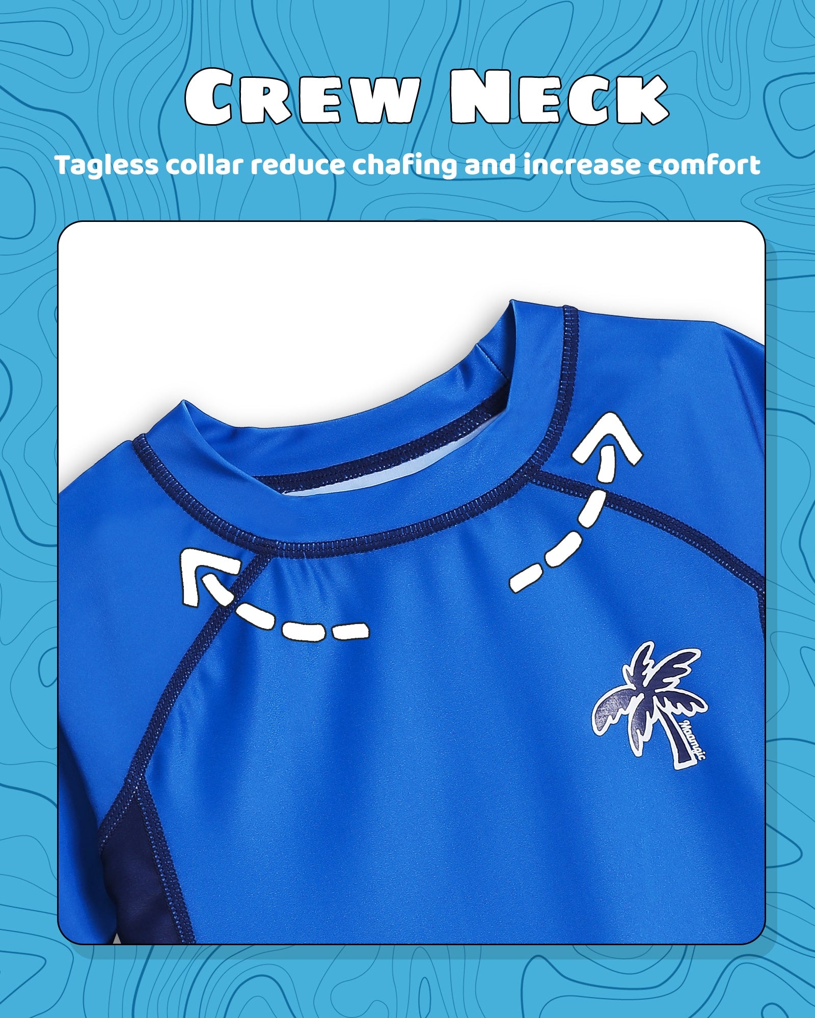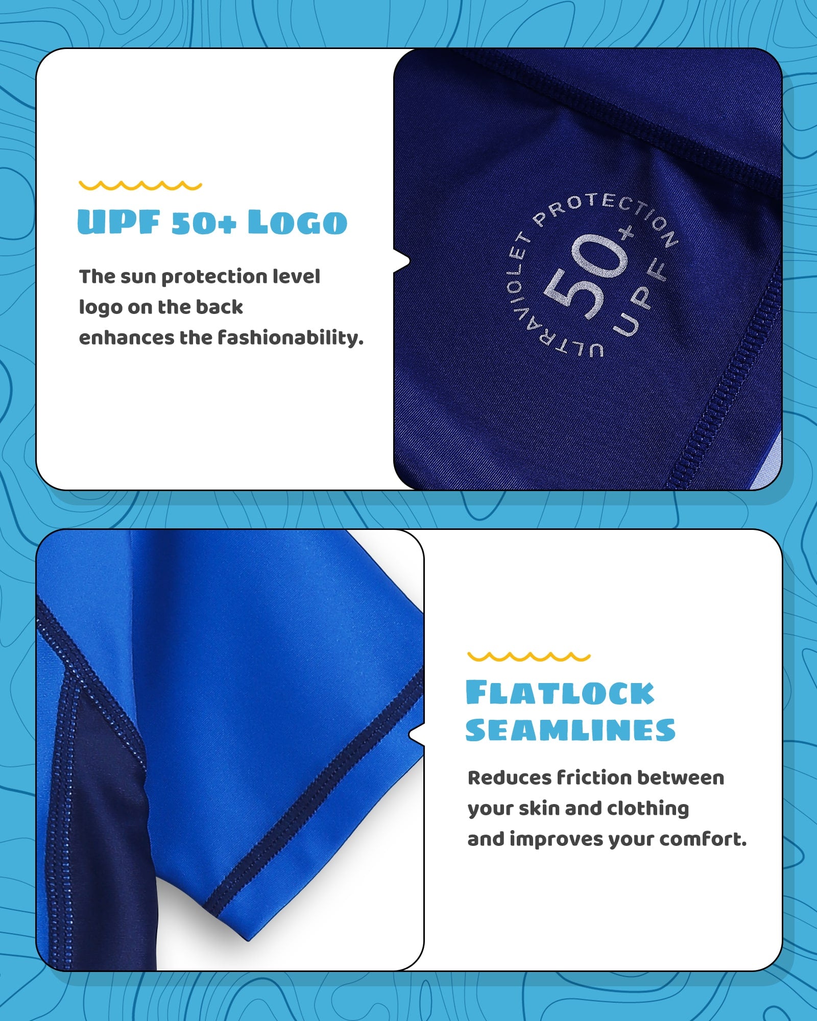 • UPF 50+: The sun-protective fabric of our rashguard swim shirt will keep your little guy's delicate skin safe from the sun! Embrace happy summer days with a maamgic sun protective boys bathing top!