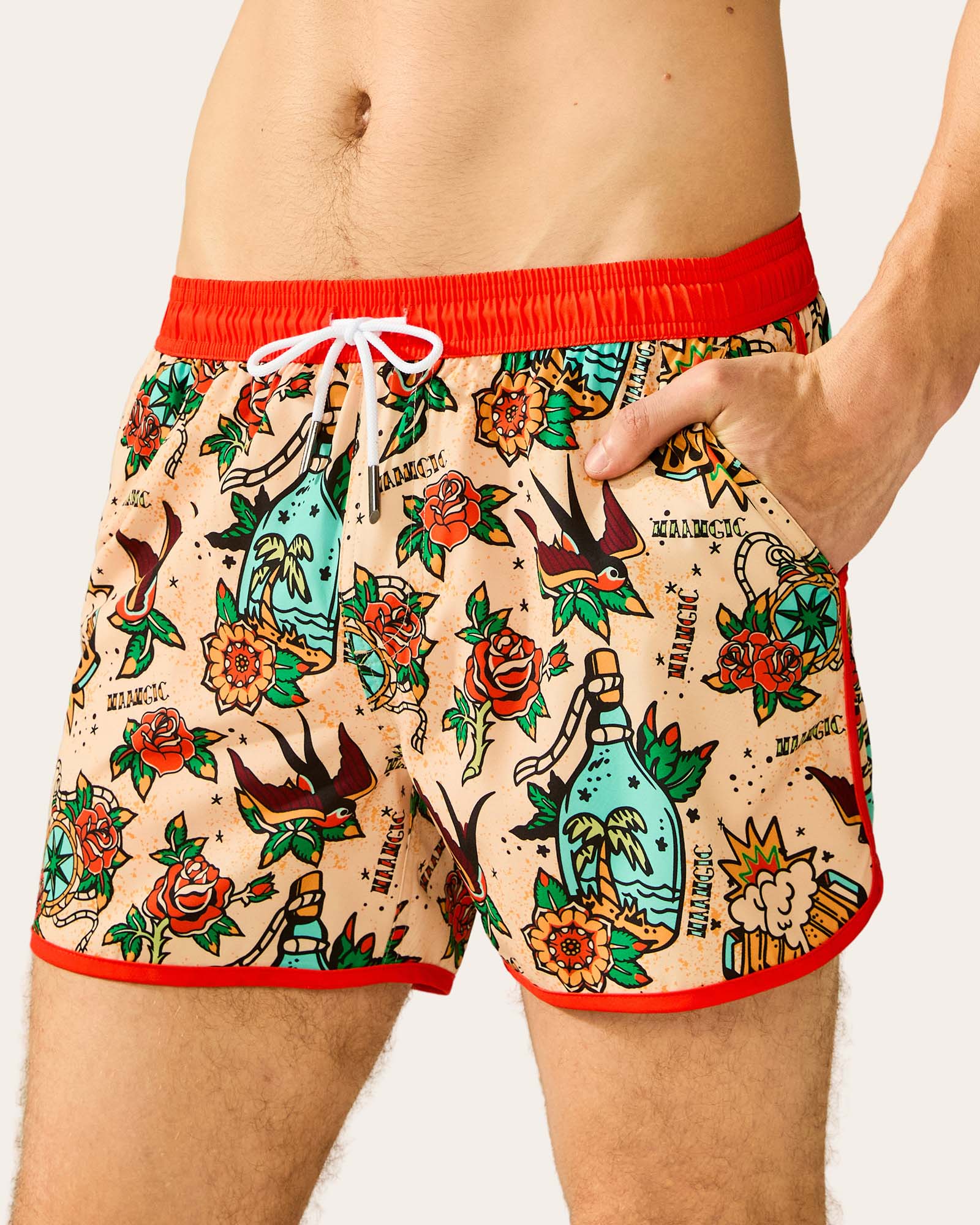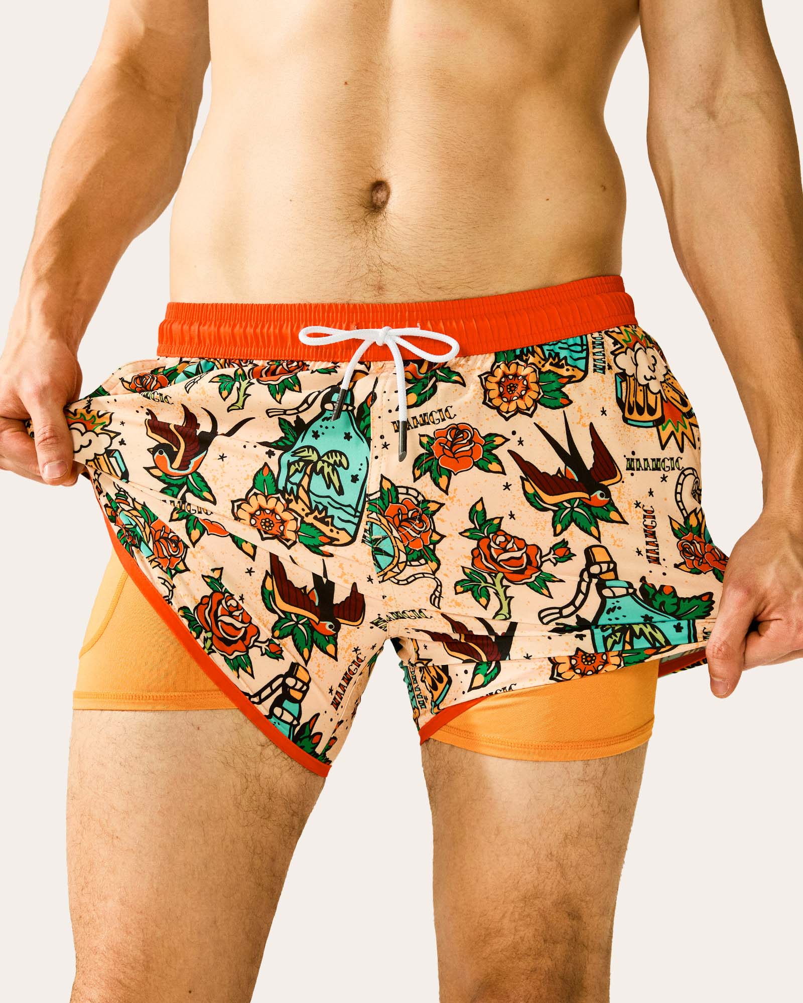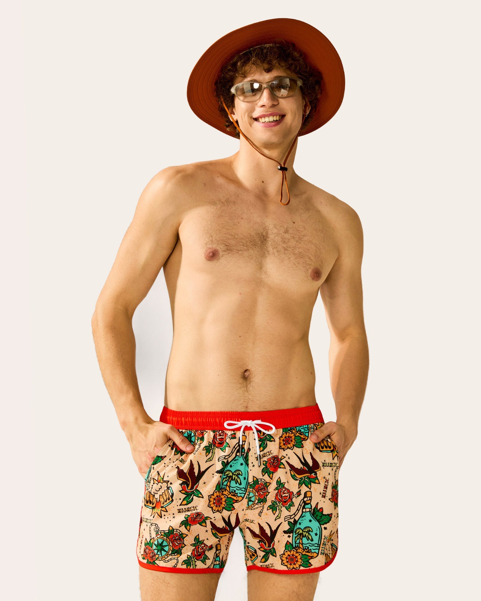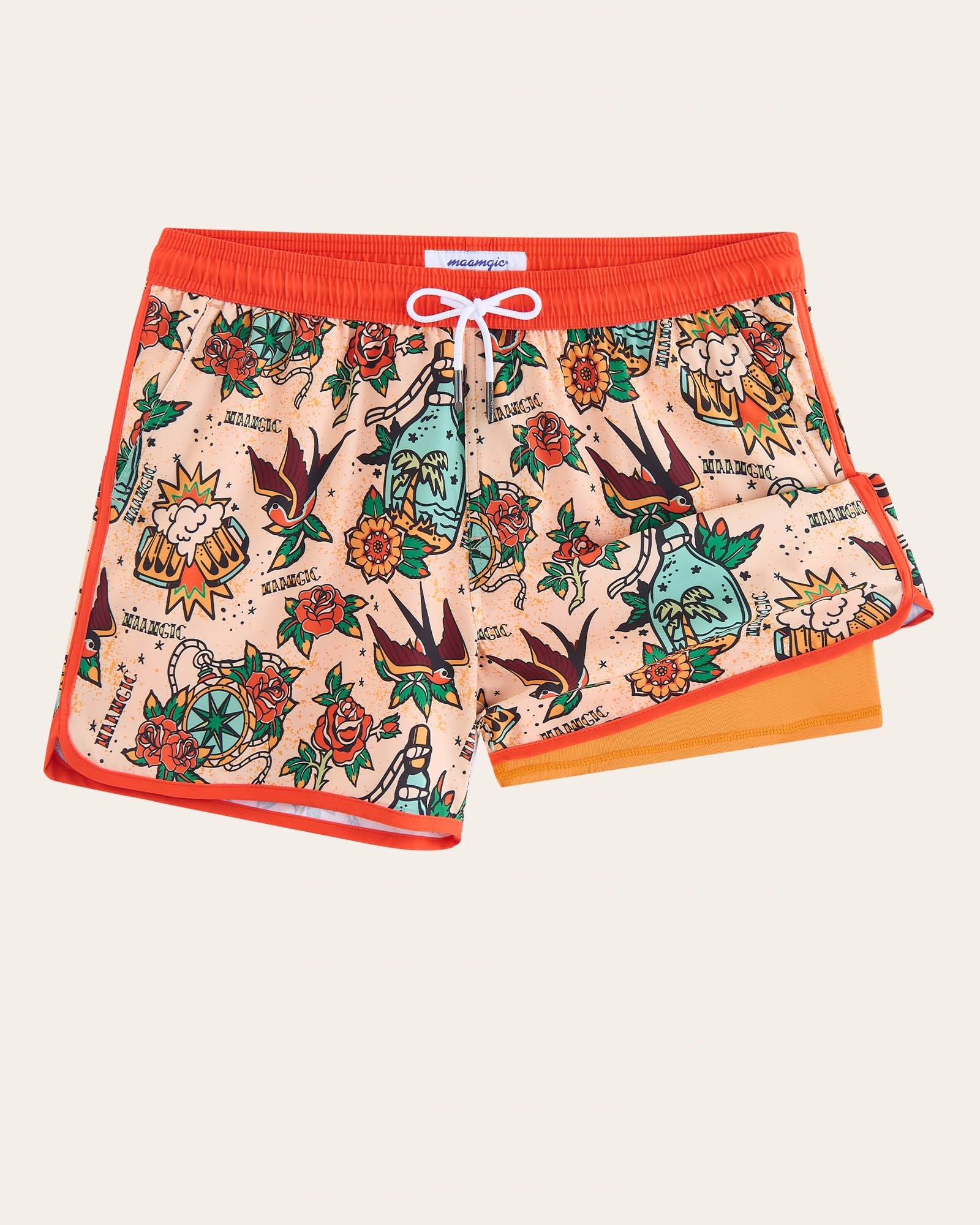The SeaBorn II Vintage Swim Trunks feature a tailored 4.5" vintage fit with unique retro prints. Upgraded with a silky compression liner for anti-chafe support and quick-dry fabric, they offer effortless charm and all-day comfort from the beach to the boardwalk.