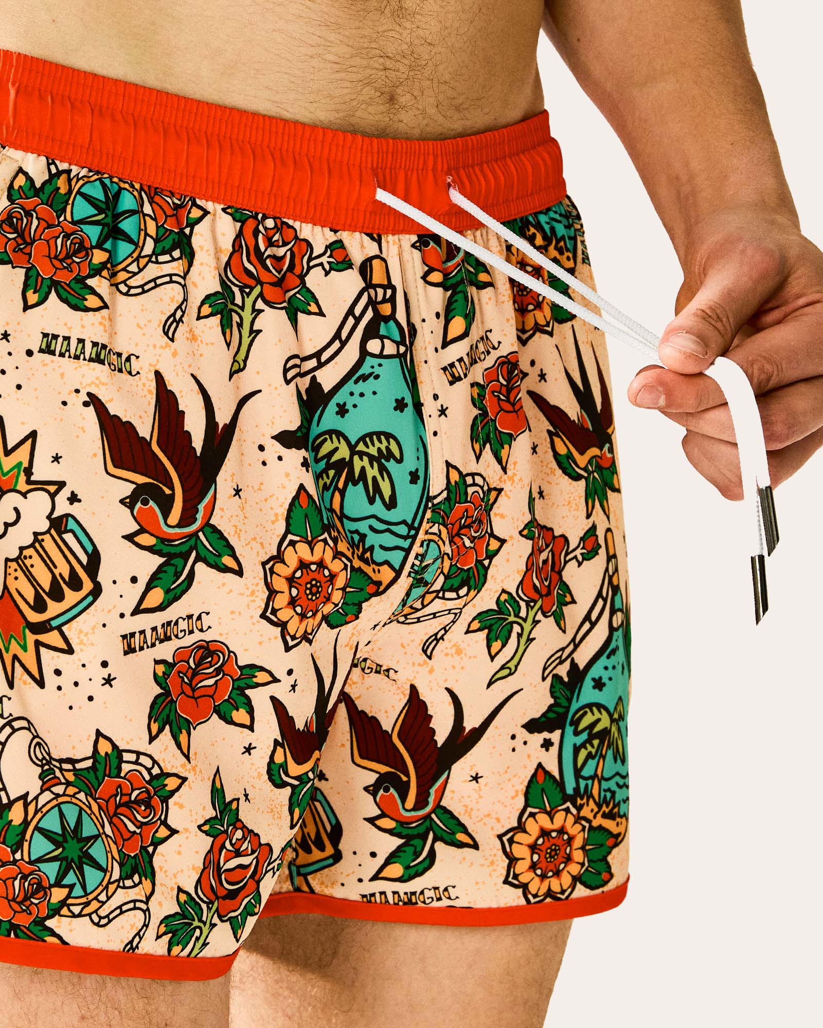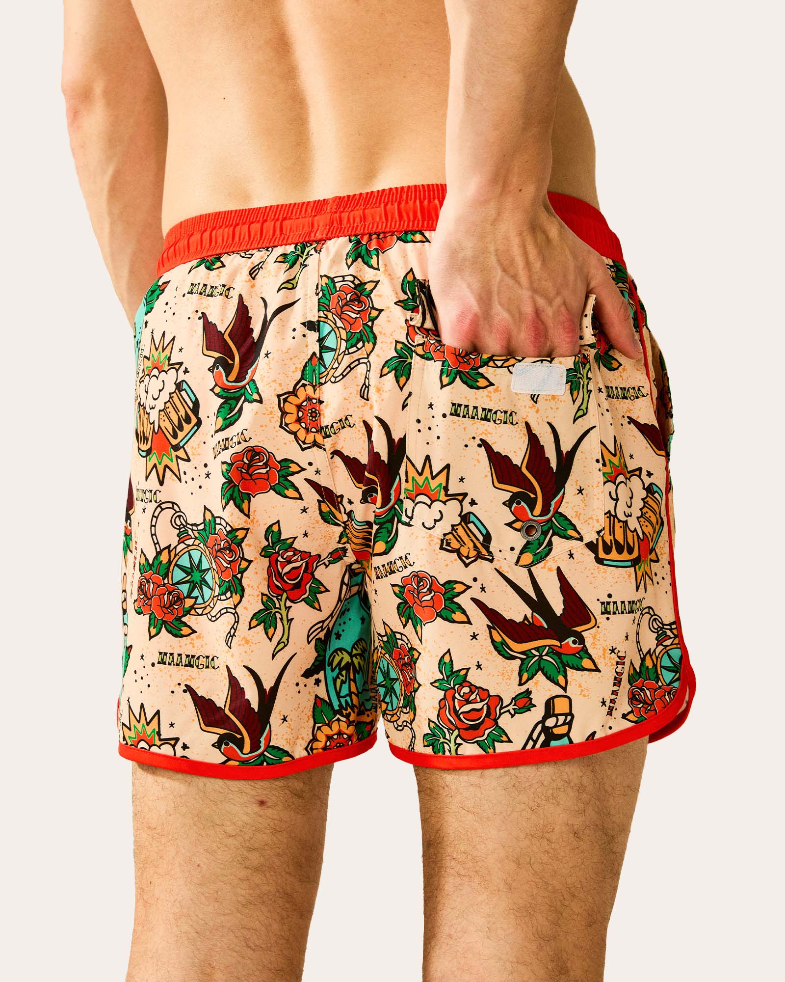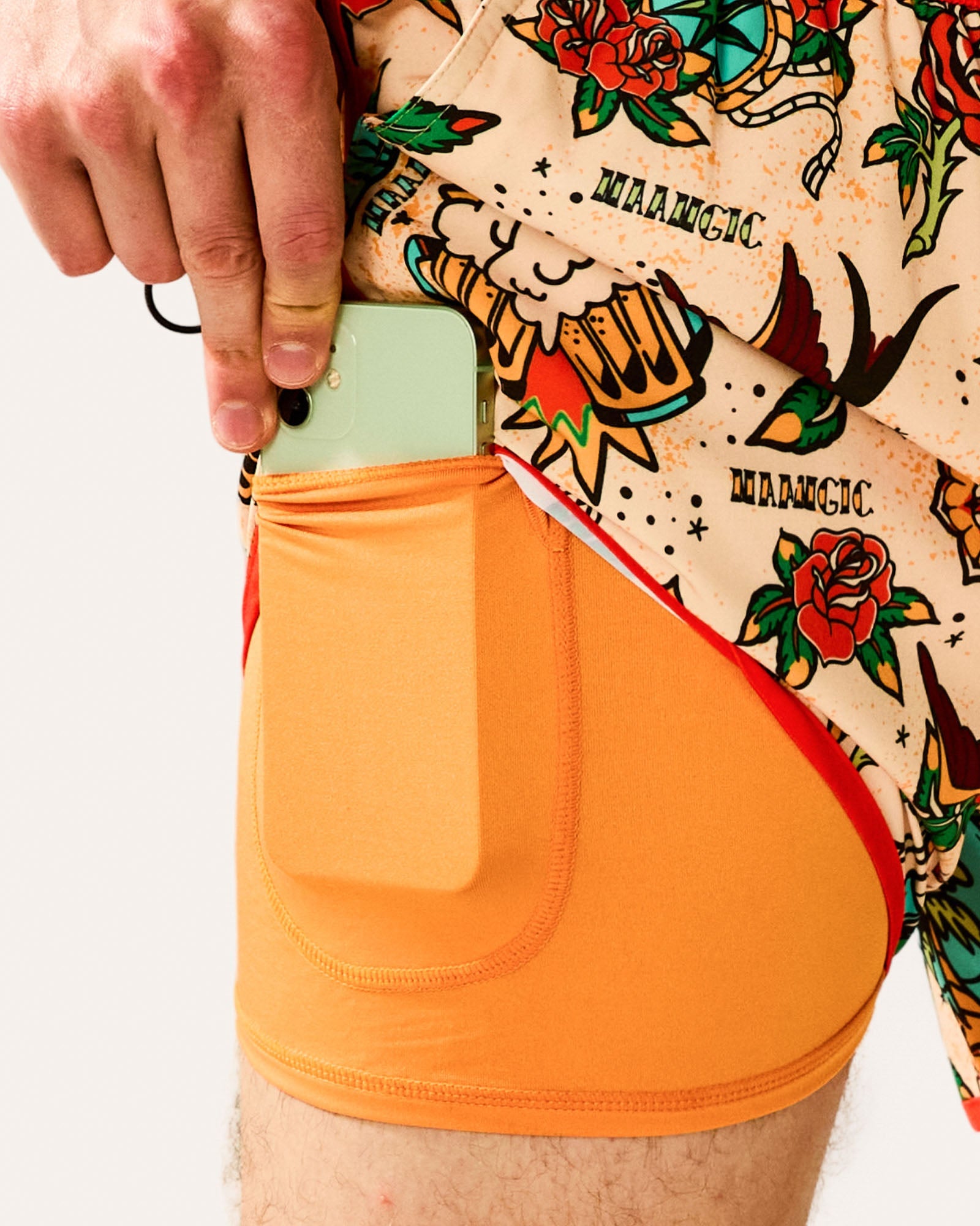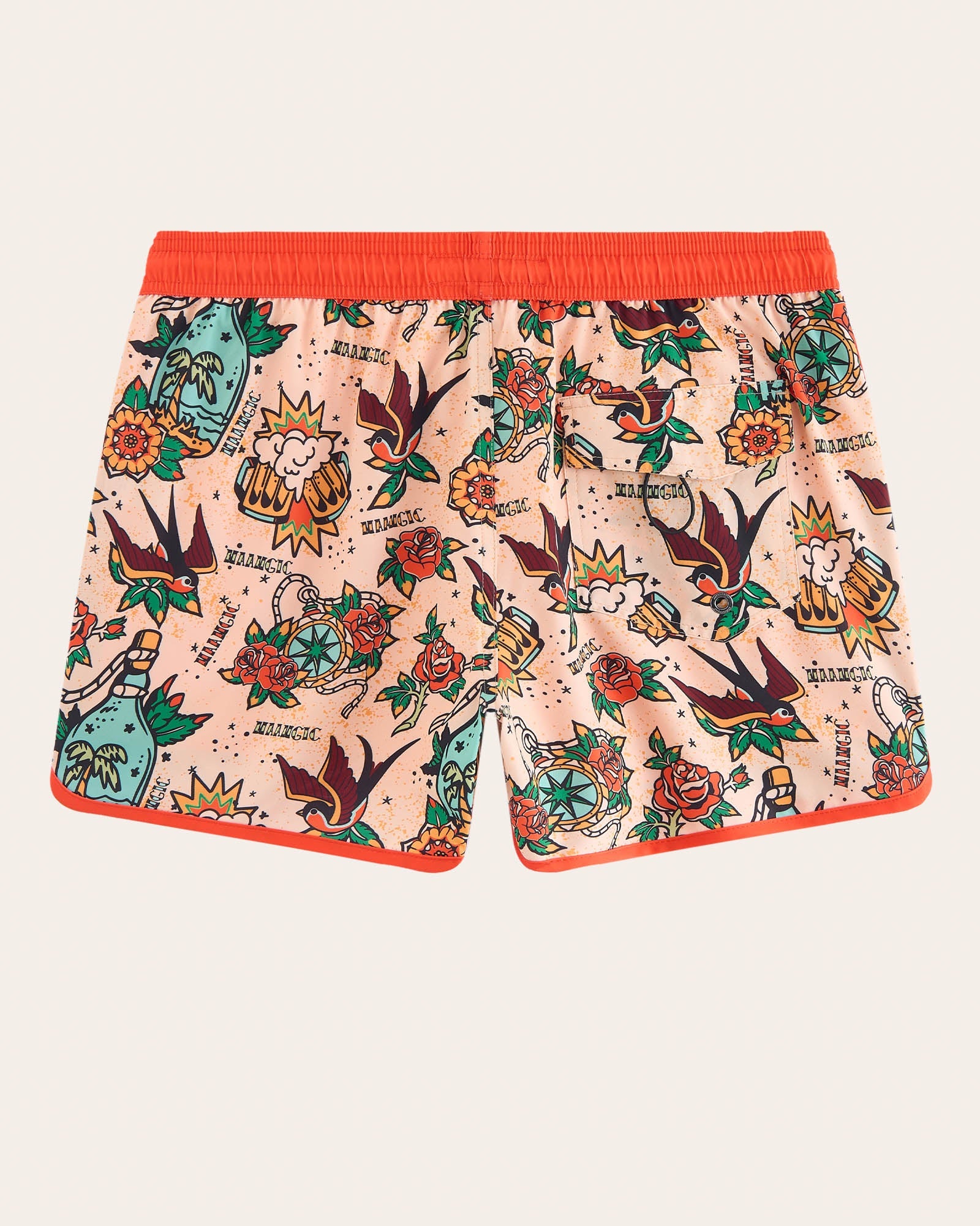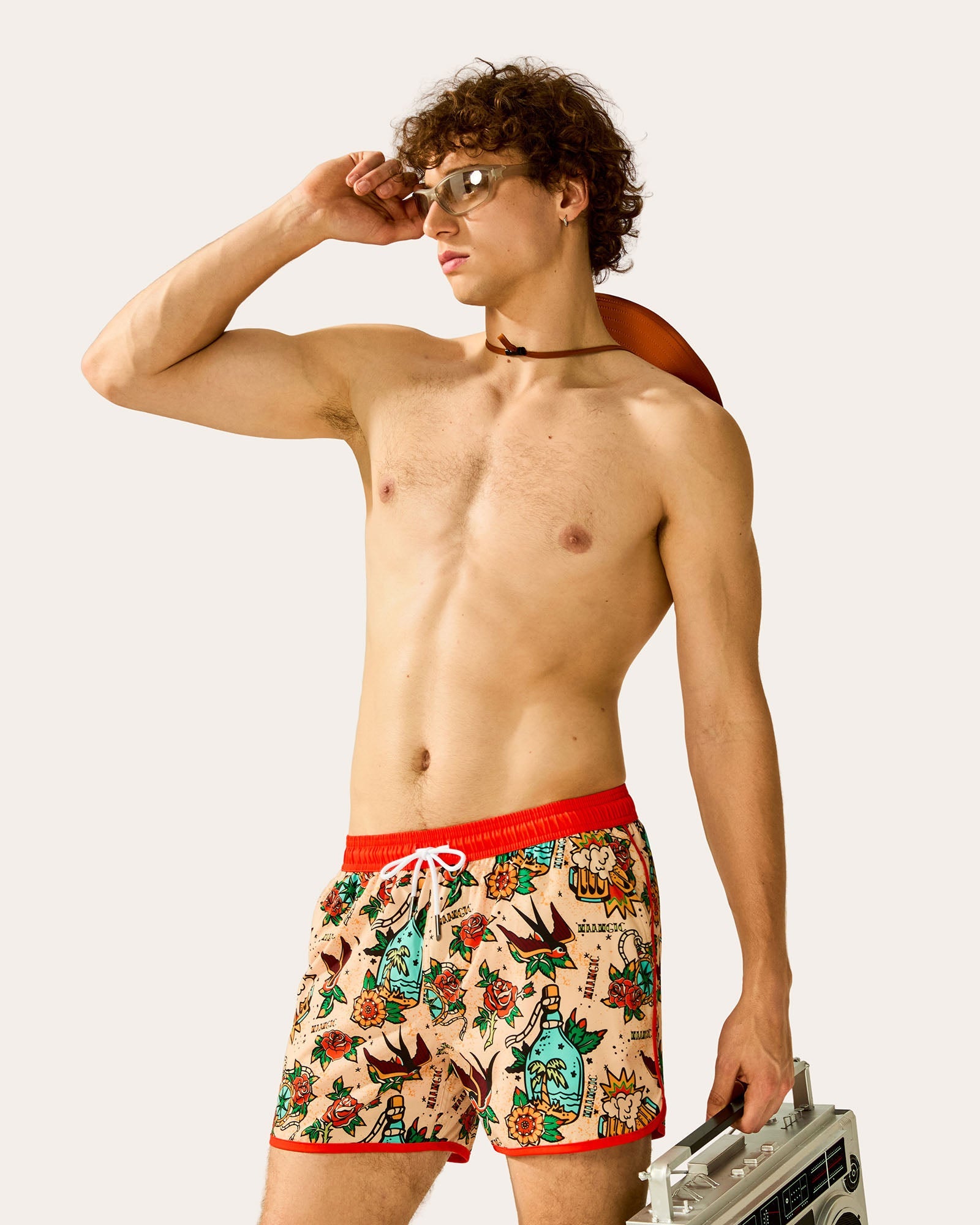The SeaBorn II Vintage Swim Trunks feature a tailored 4.5" vintage fit with unique retro prints. Upgraded with a silky compression liner for anti-chafe support and quick-dry fabric, they offer effortless charm and all-day comfort from the beach to the boardwalk.