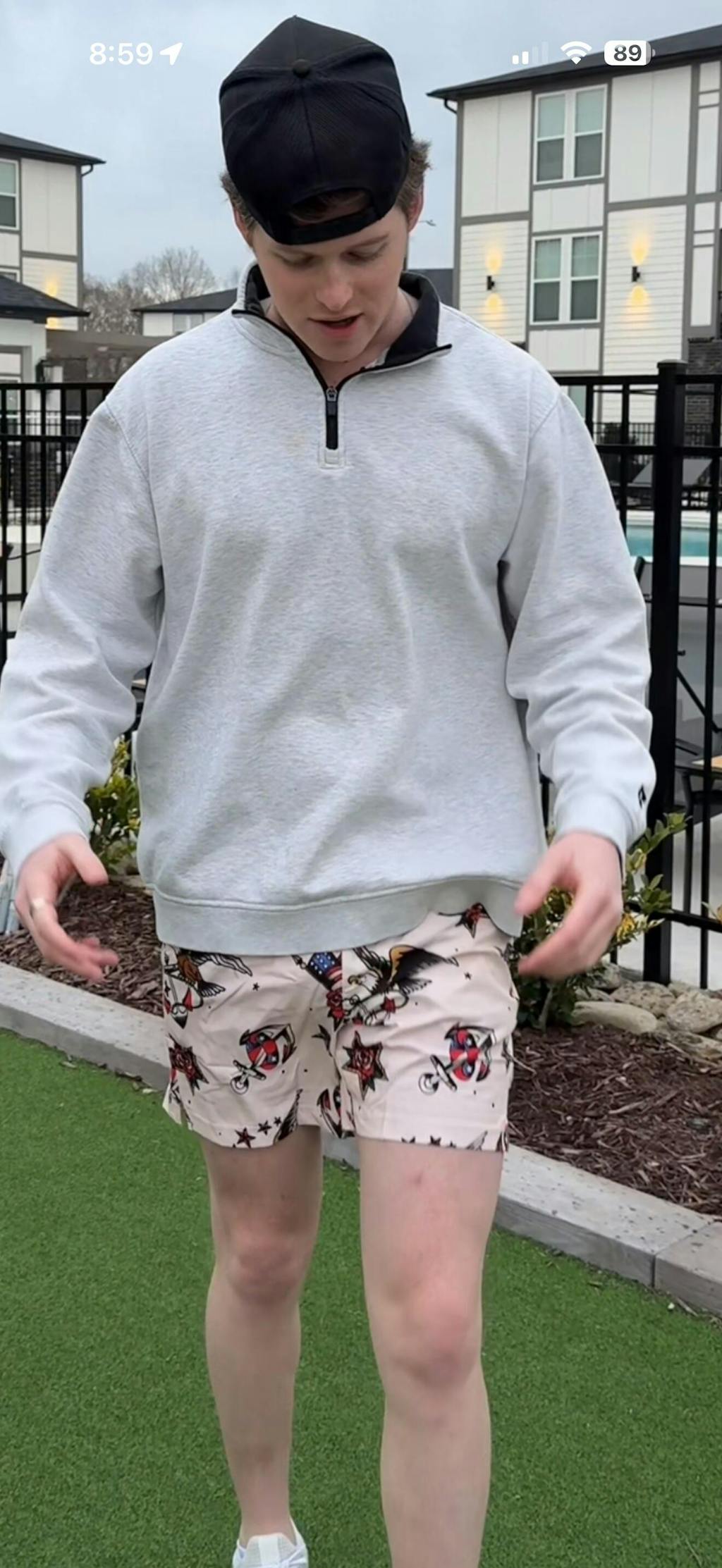 These swim trunks feature a cool cartoon, style print with the American flag and bald eagle, and symbols of freedom, openness, and pride. The colors are soft and not too bright, giving a calm, vintage feel. Inside, the deep red mesh liner matches the red in the flag, adding a nice touch of detail. It's a fun, meaningful design with classic American style.