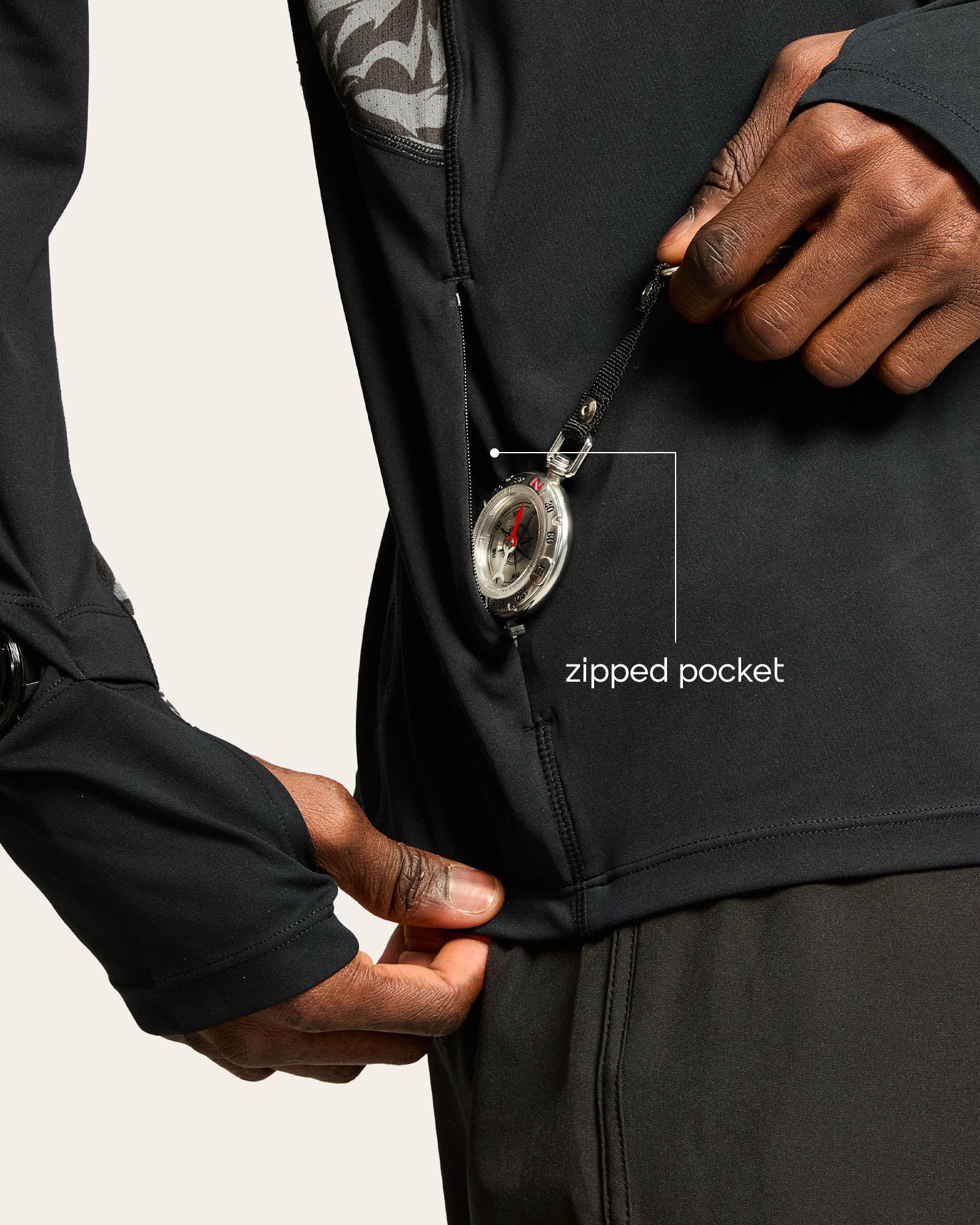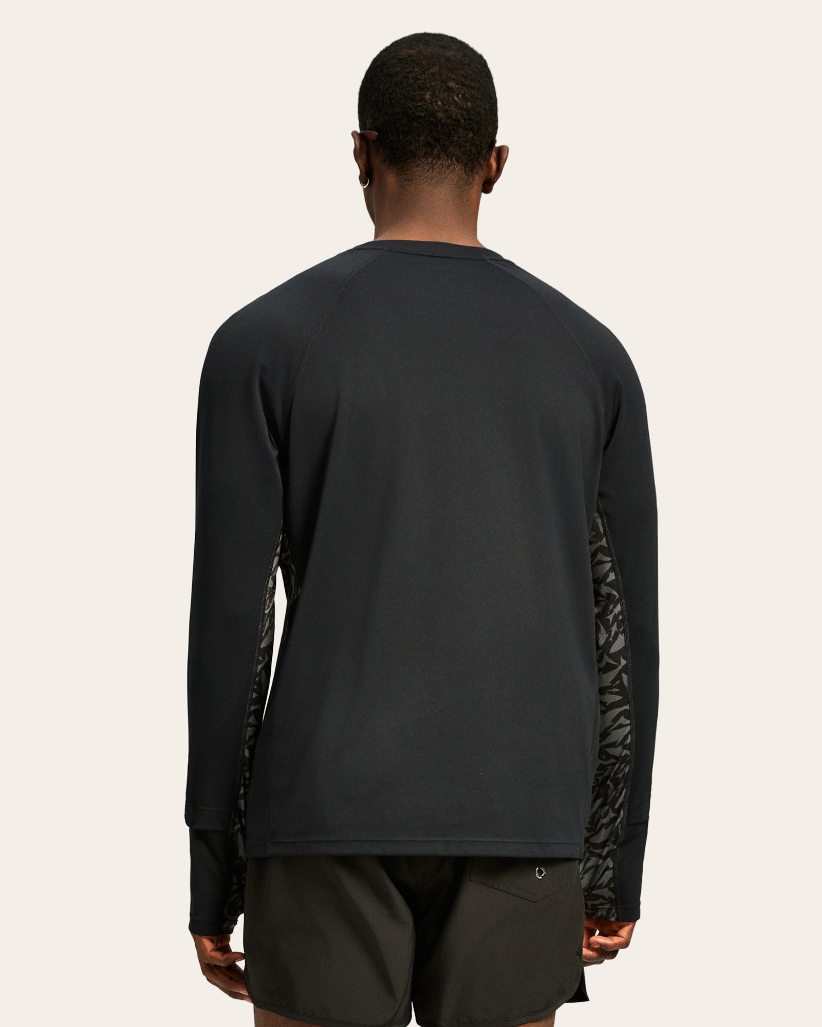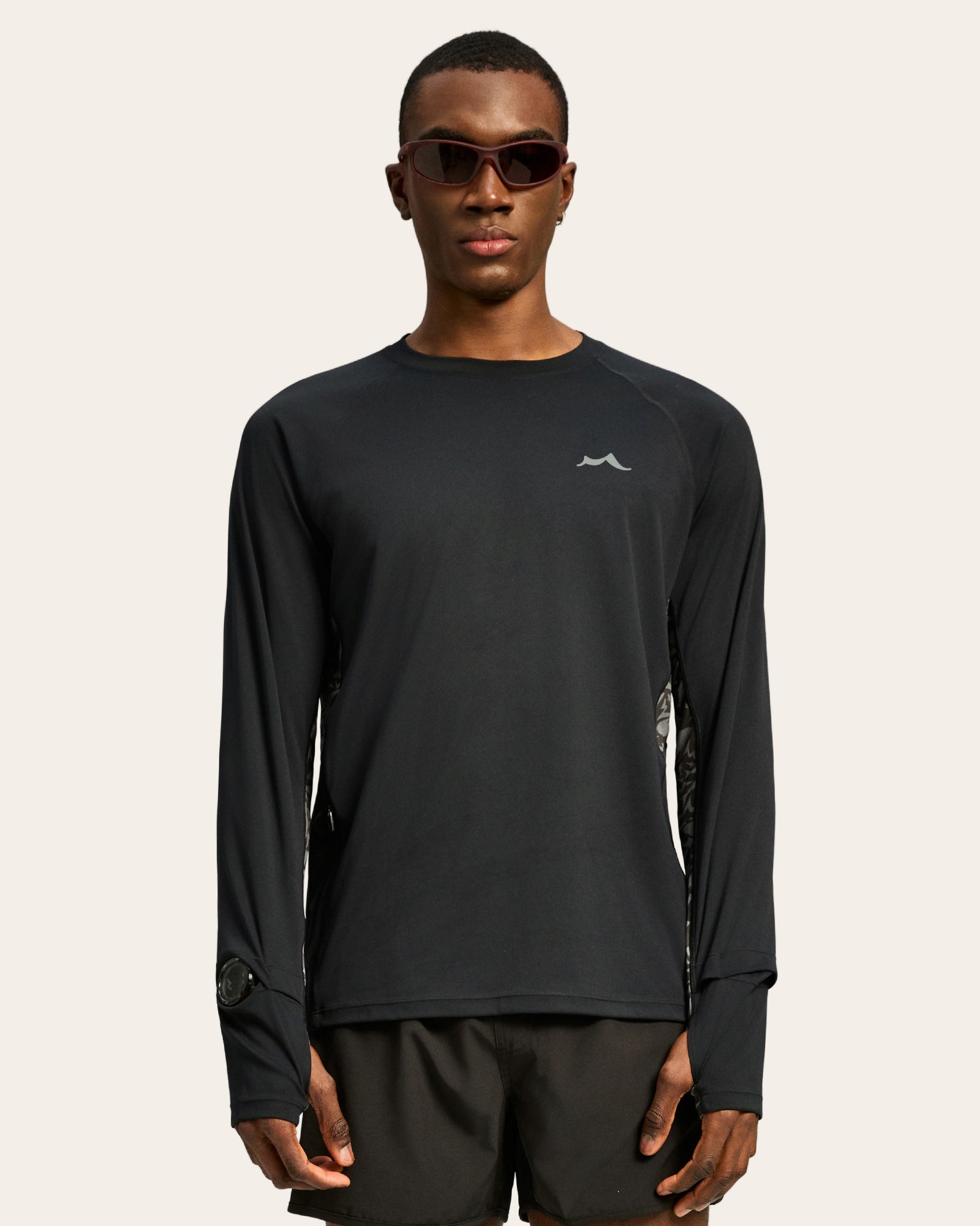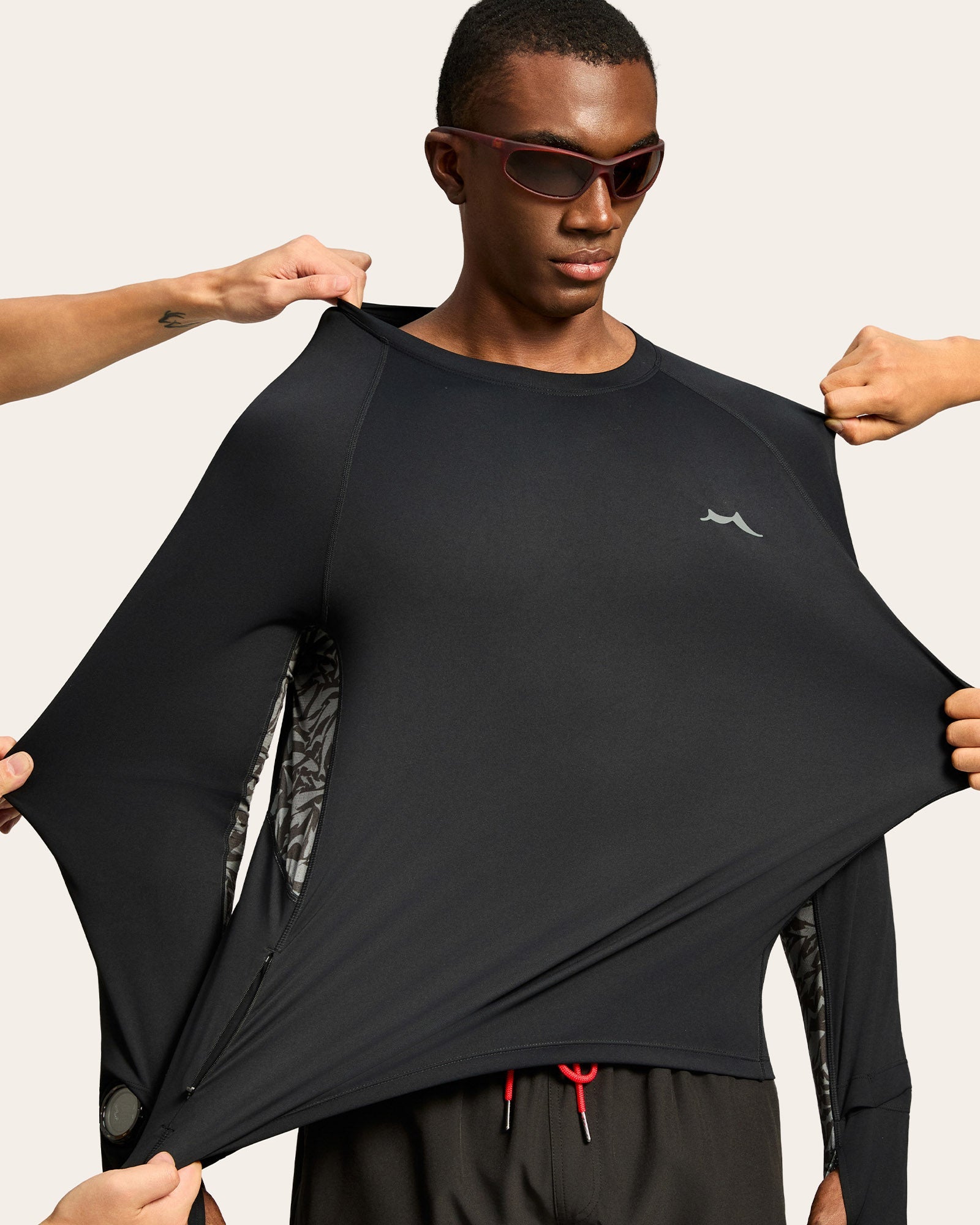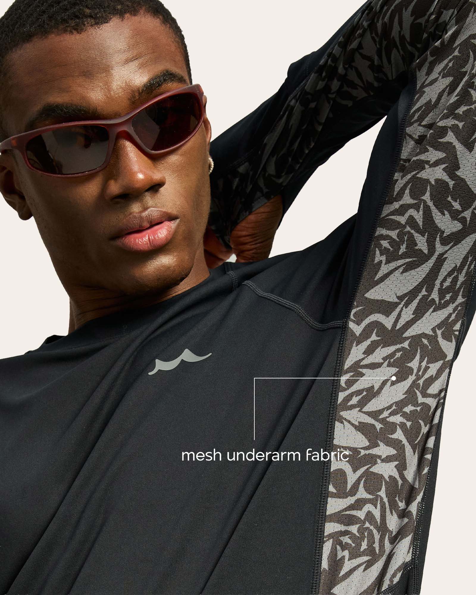 Elevate your outdoor kit with our SunTrai long sleeve sun protection shirts. Designed with a sleek, athletic patchwork aesthetic, the Sharkskin Black shirt combines a slimming silhouette with hig functionality. With strategic mesh inserts for superior breathability and a moisture-wicking fabric that moves with you, this performance shirt is the perfect hybrid of street and trail-ready style.