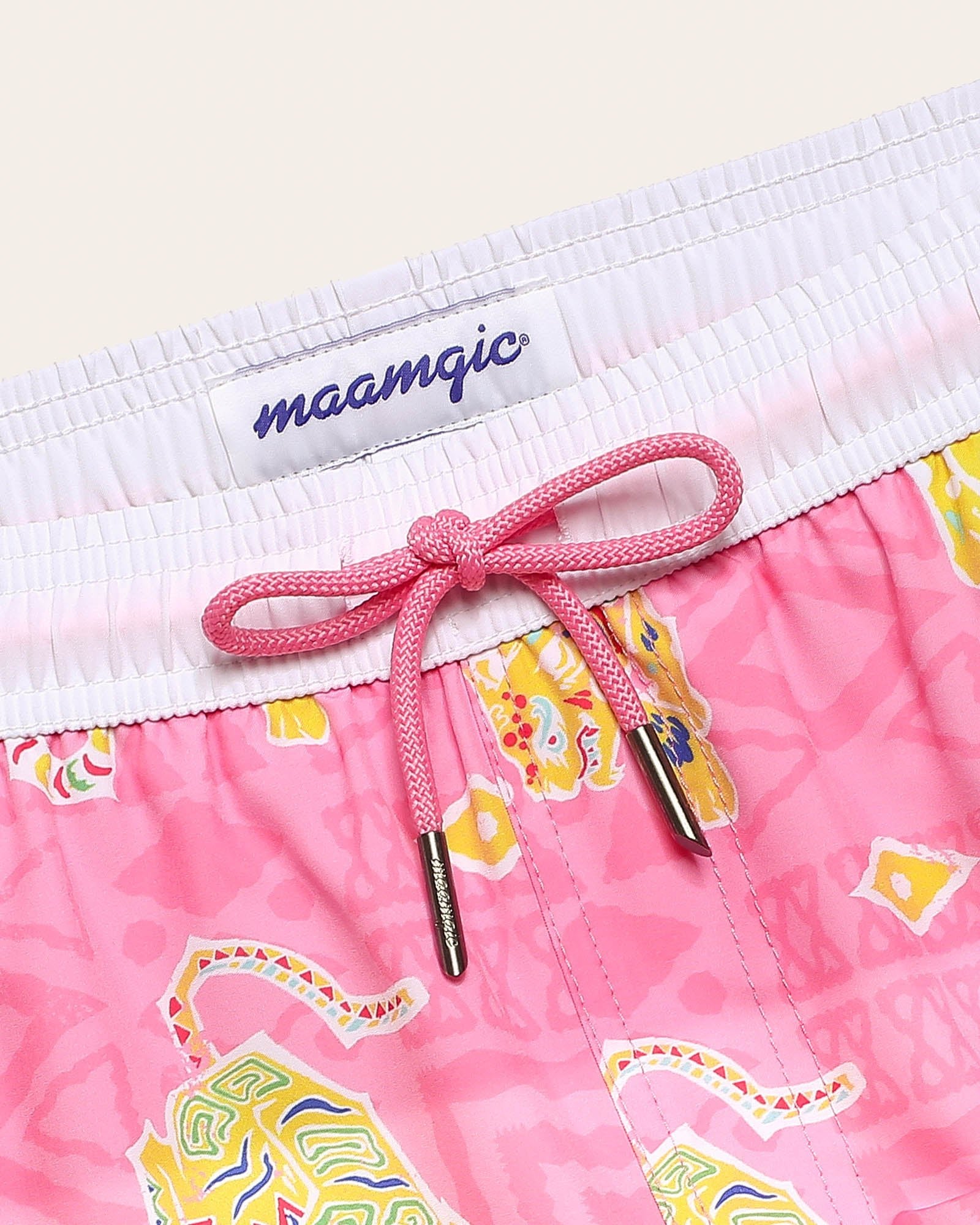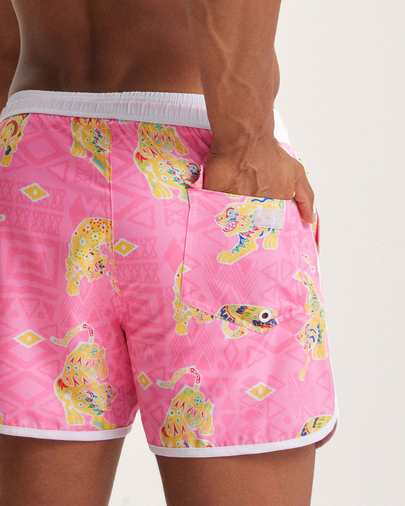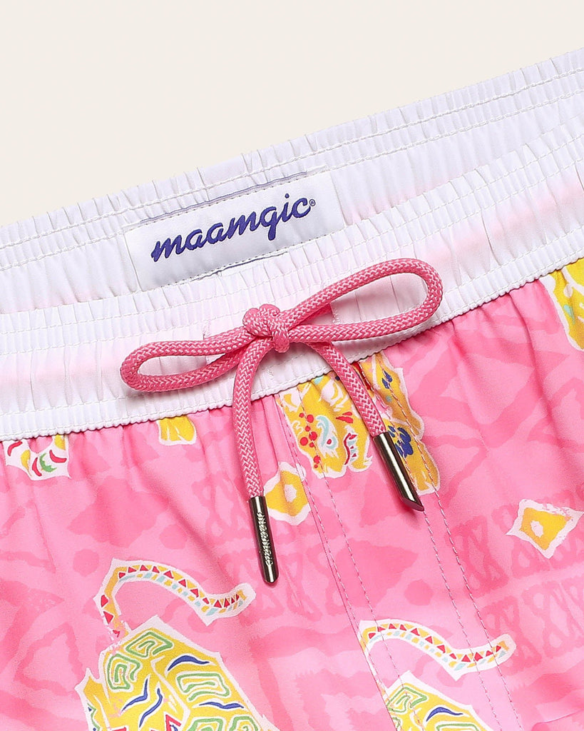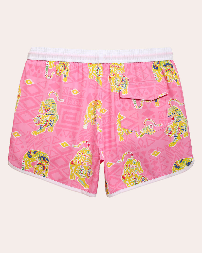 Lucky Fauna Tiger Swim Trunks are comfortable and quick-drying. The 4.5-inch inseam gives you freedom to move, and the multi-pocket design adds extra storage. The mesh liner ensures comfort and quick drainage. Enjoy the fun octopus print this summer!