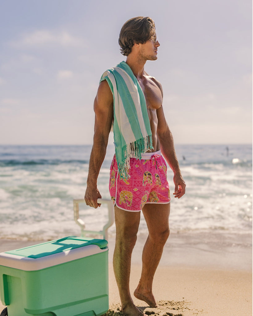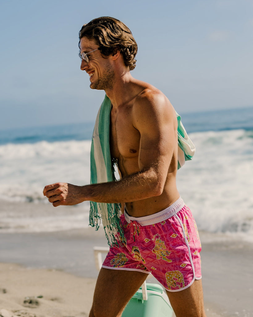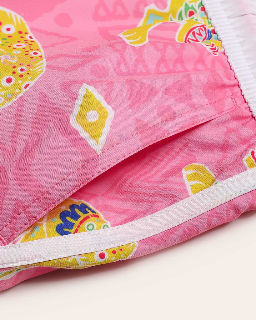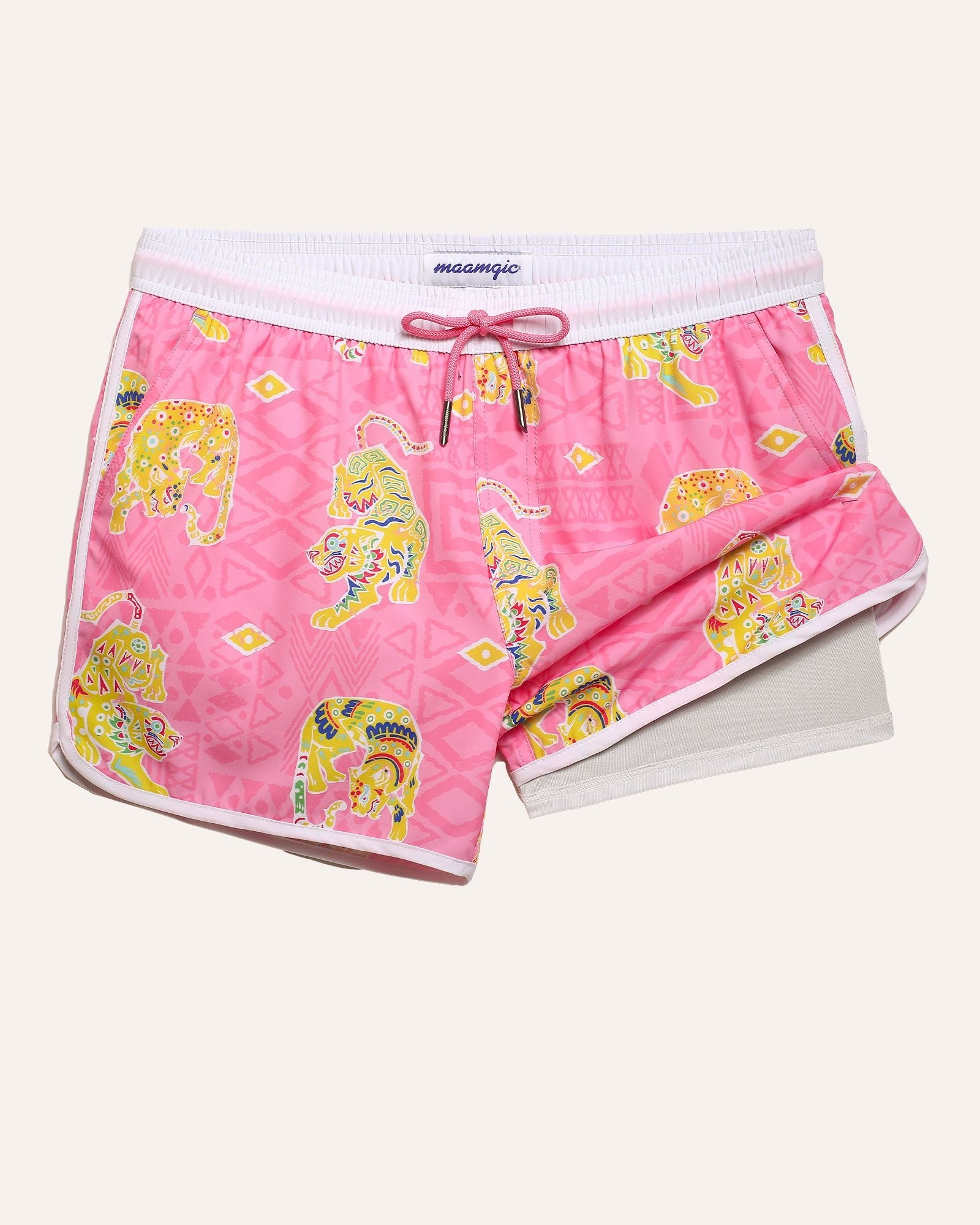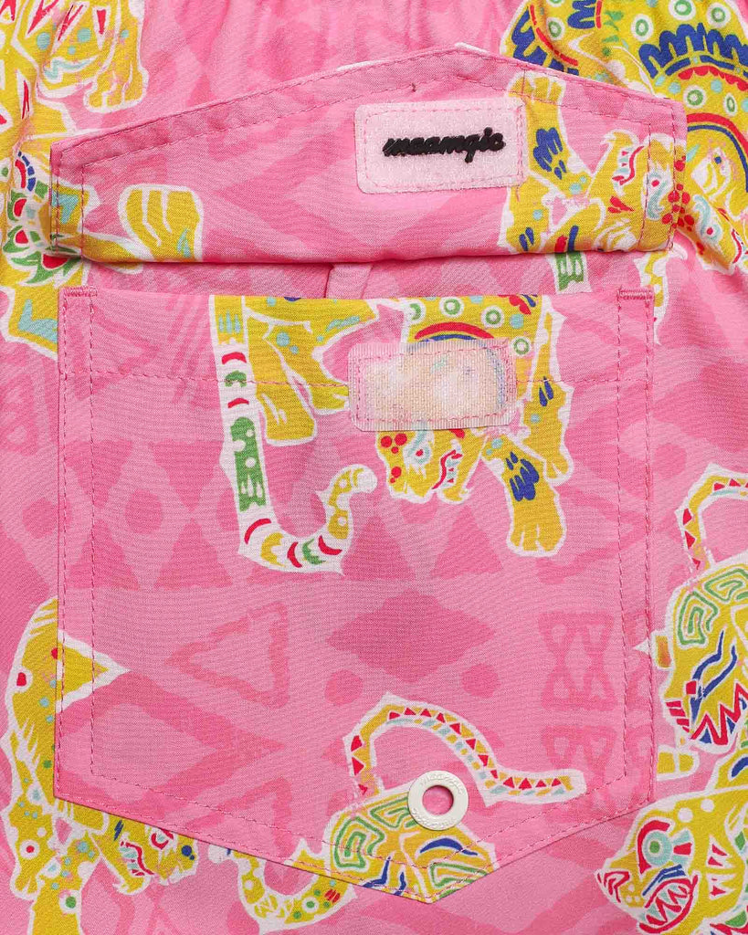 Lucky Fauna Tiger Swim Trunks are comfortable and quick-drying. The 4.5-inch inseam gives you freedom to move, and the multi-pocket design adds extra storage. The mesh liner ensures comfort and quick drainage. Enjoy the fun octopus print this summer!
