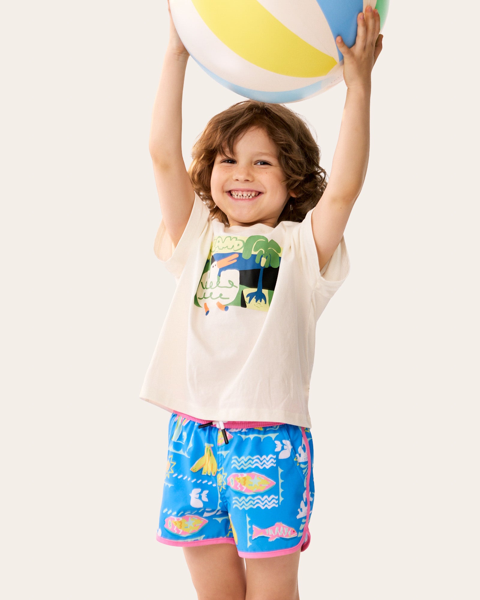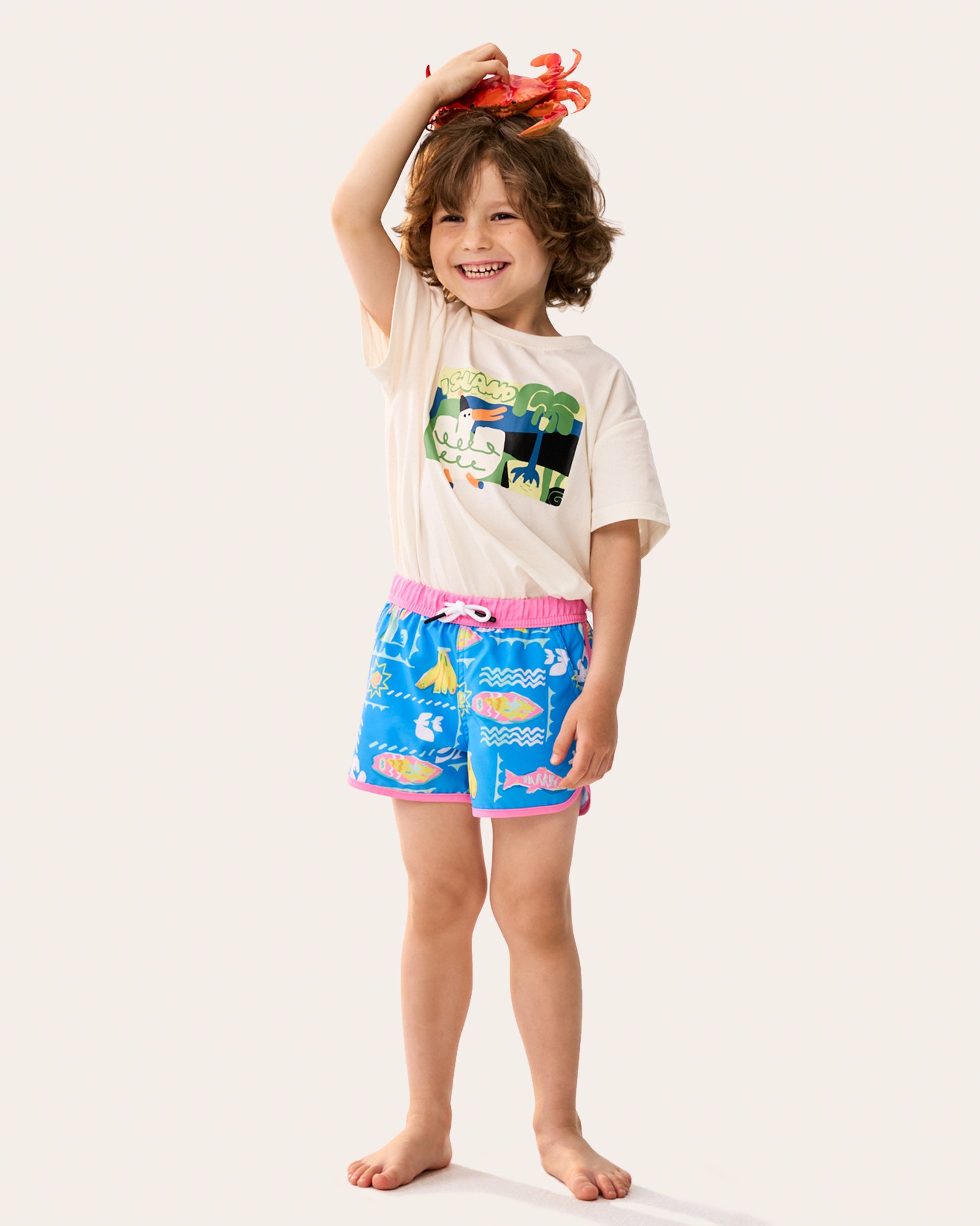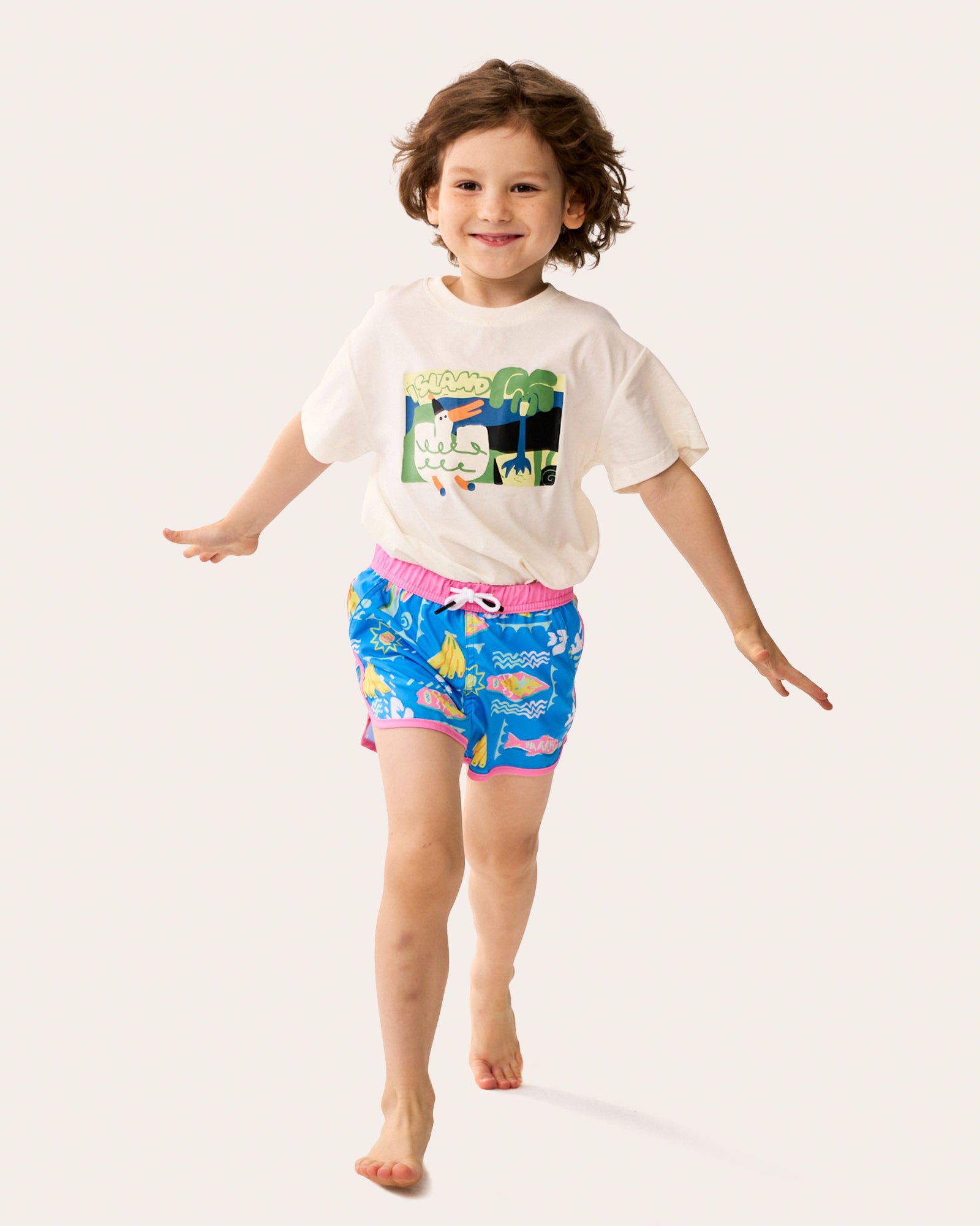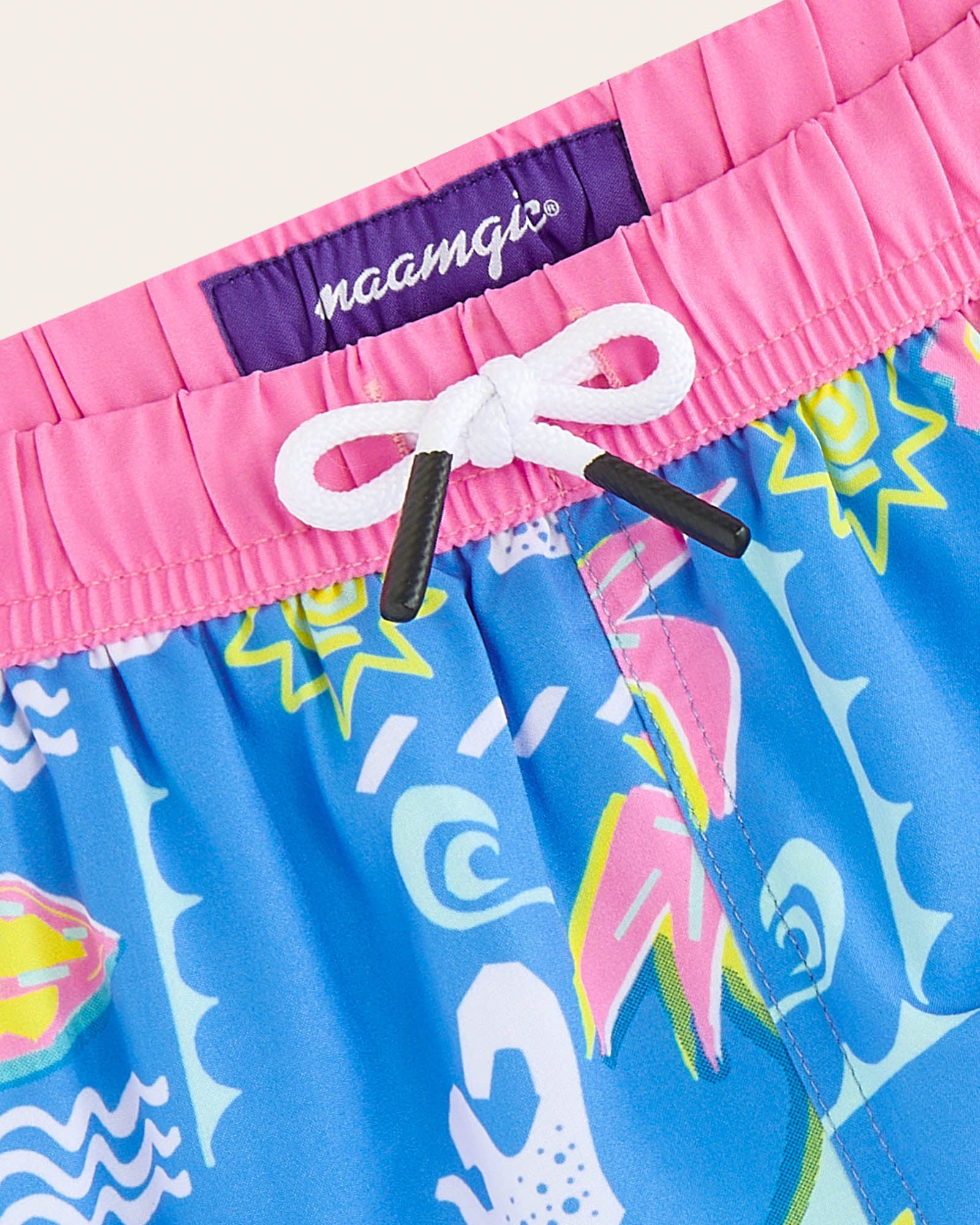 Ready for a tropical takeover? Our WavyWoo Kids trunks feature a bold blue-and-pink splash of pineapples and surfboards. The silky 2-in-1 liner keeps him rash-free, while the high-stretch fabric ensures boys can run, jump, and splash with total freedom. Style meets play in every stitch.