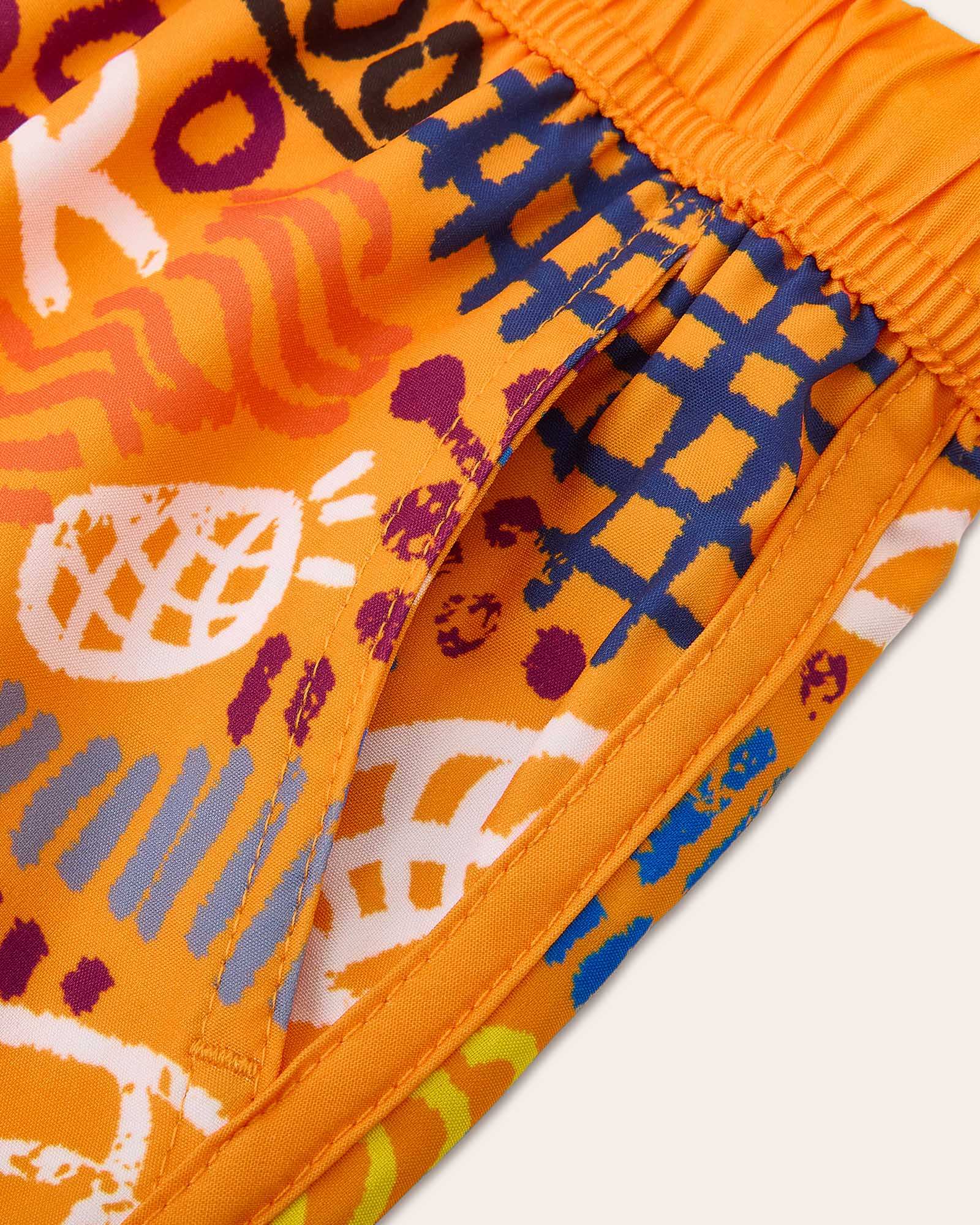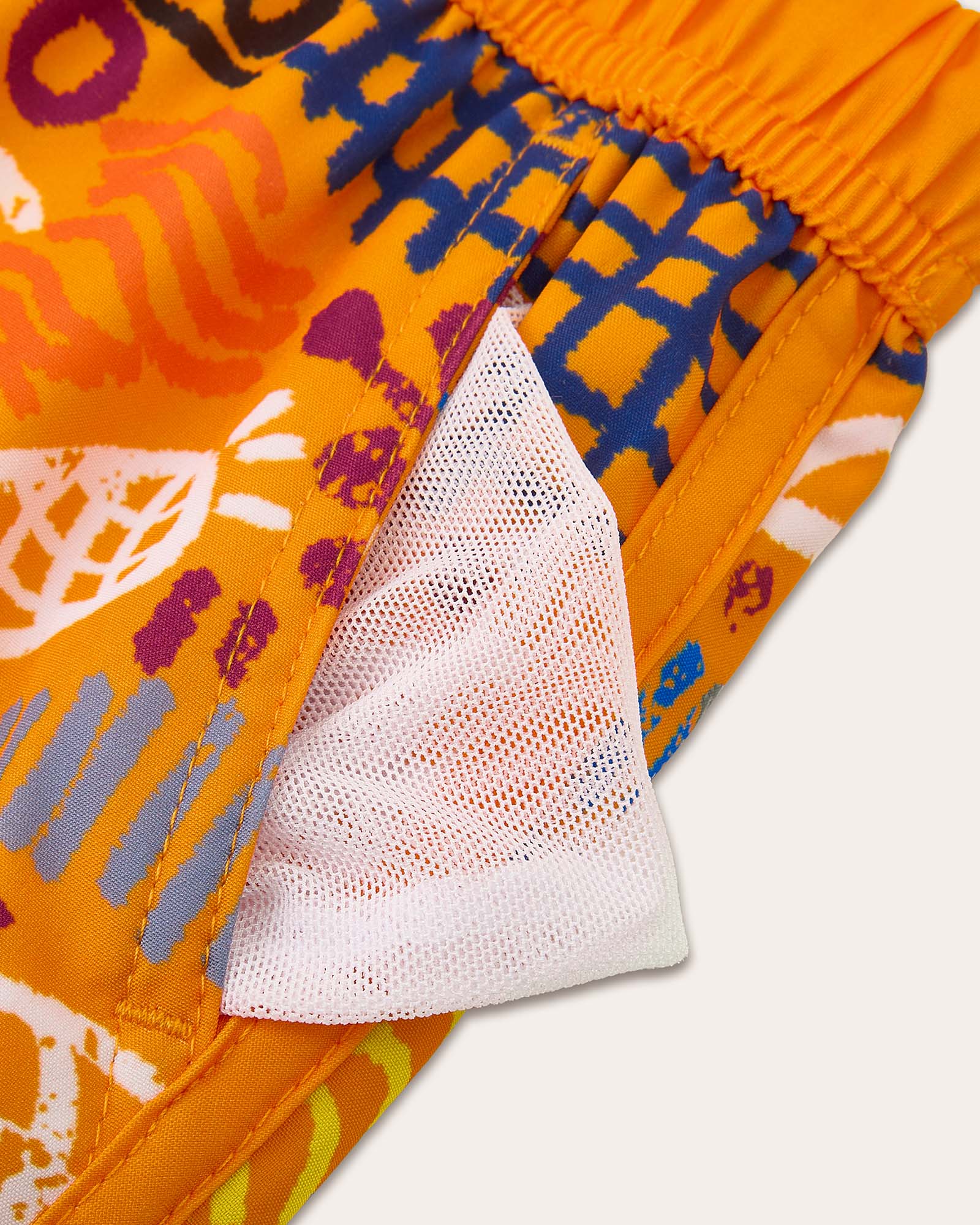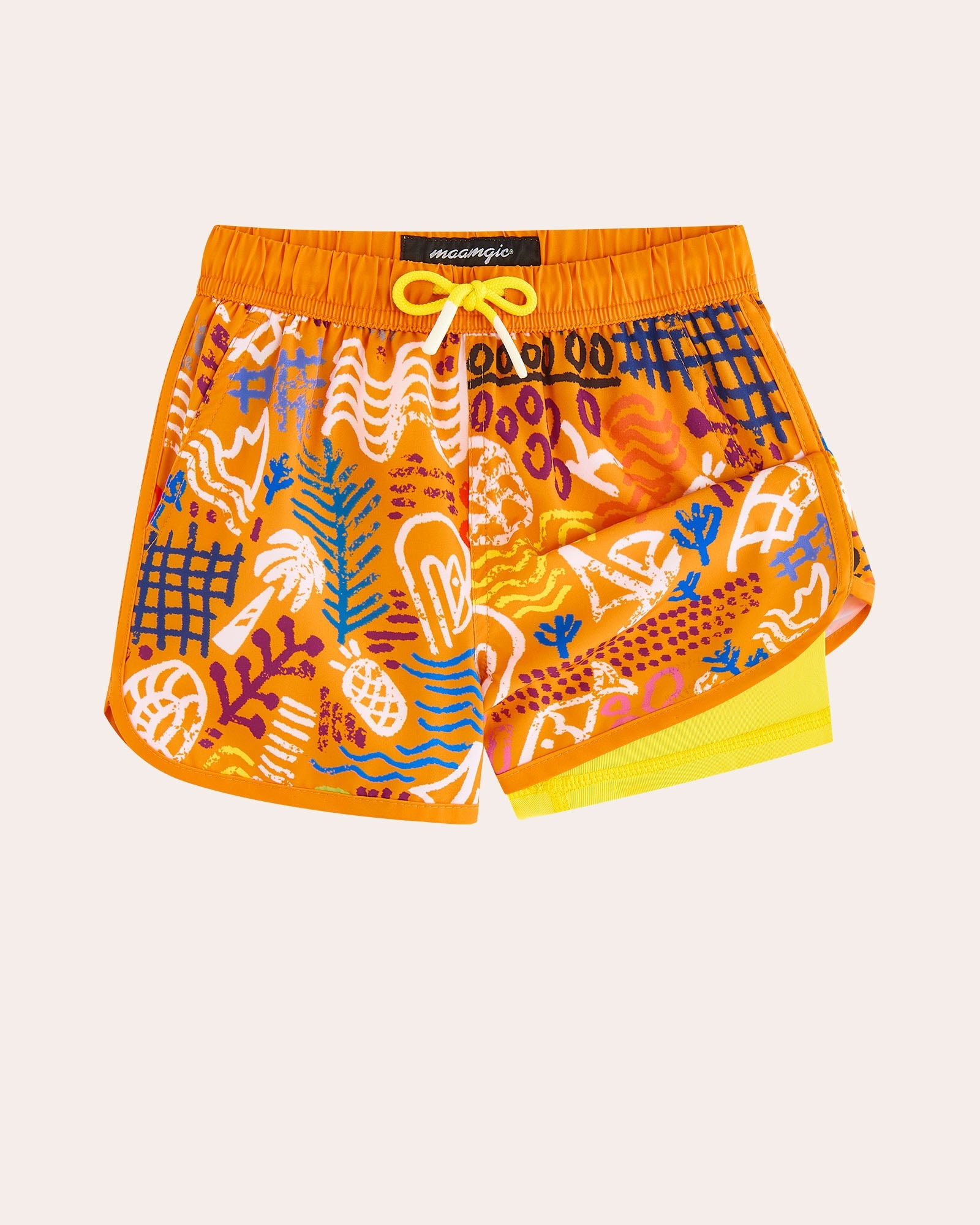 Master the splash with the Kids Retro Swim Trunks. Featuring a vibrant orange base and playful graffiti prints, these boy swim shorts merge retro fun with high performance. Built with a soft compression liner and quick-dry fabric, they ensure all-day comfort for every little explorer.