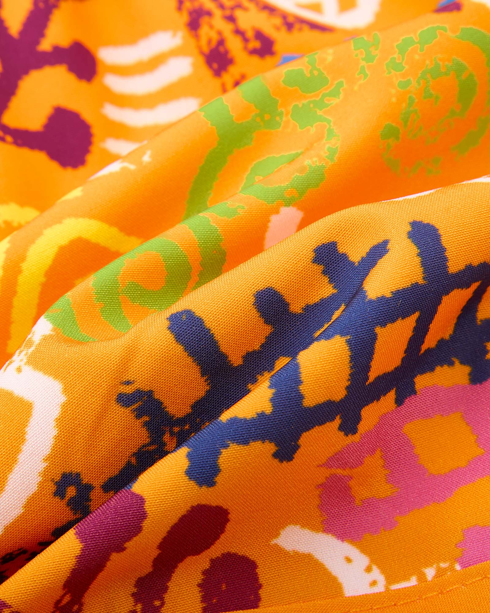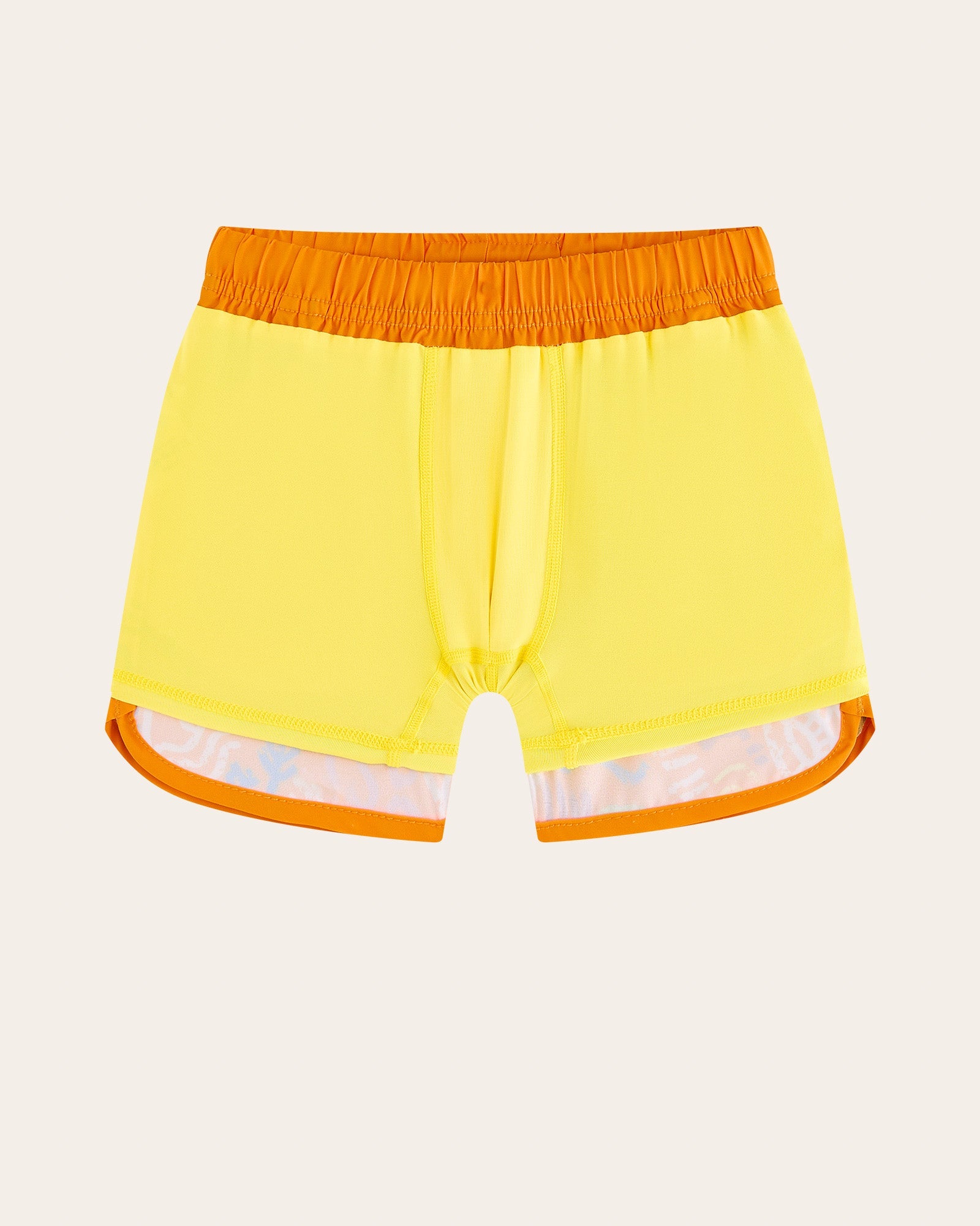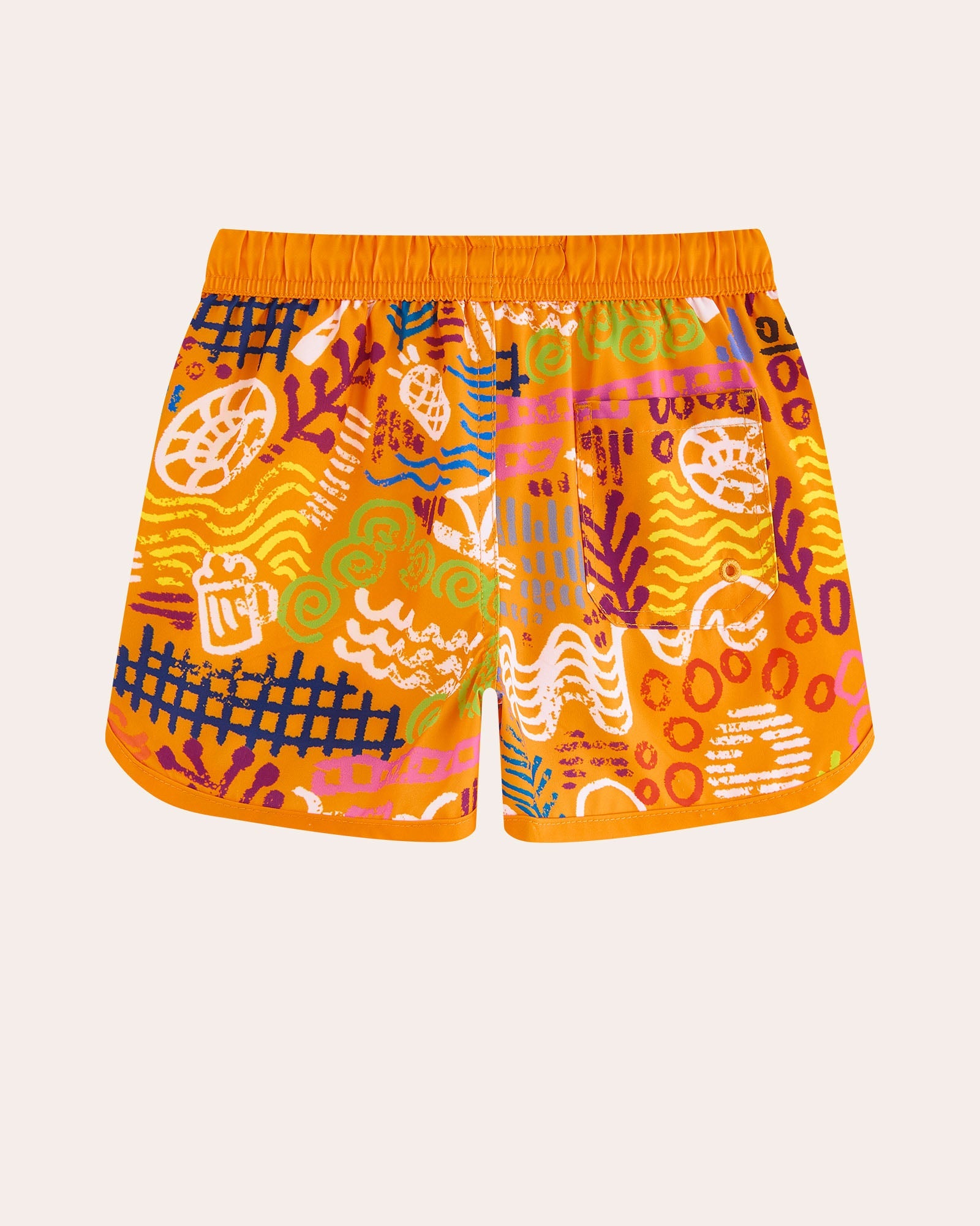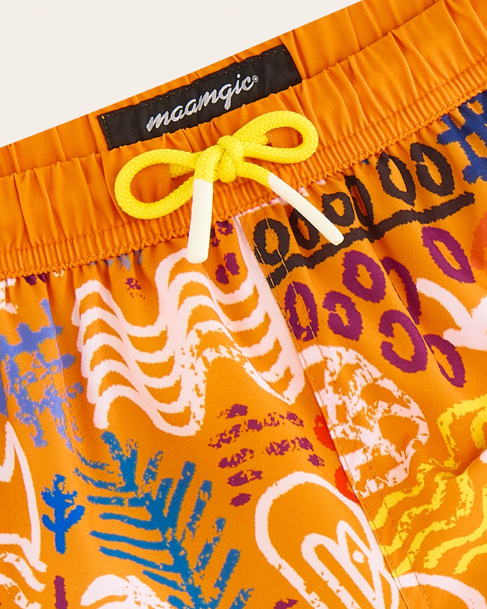 Master the splash with the Kids Retro Swim Trunks. Featuring a vibrant orange base and playful graffiti prints, these boy swim shorts merge retro fun with high performance. Built with a soft compression liner and quick-dry fabric, they ensure all-day comfort for every little explorer.