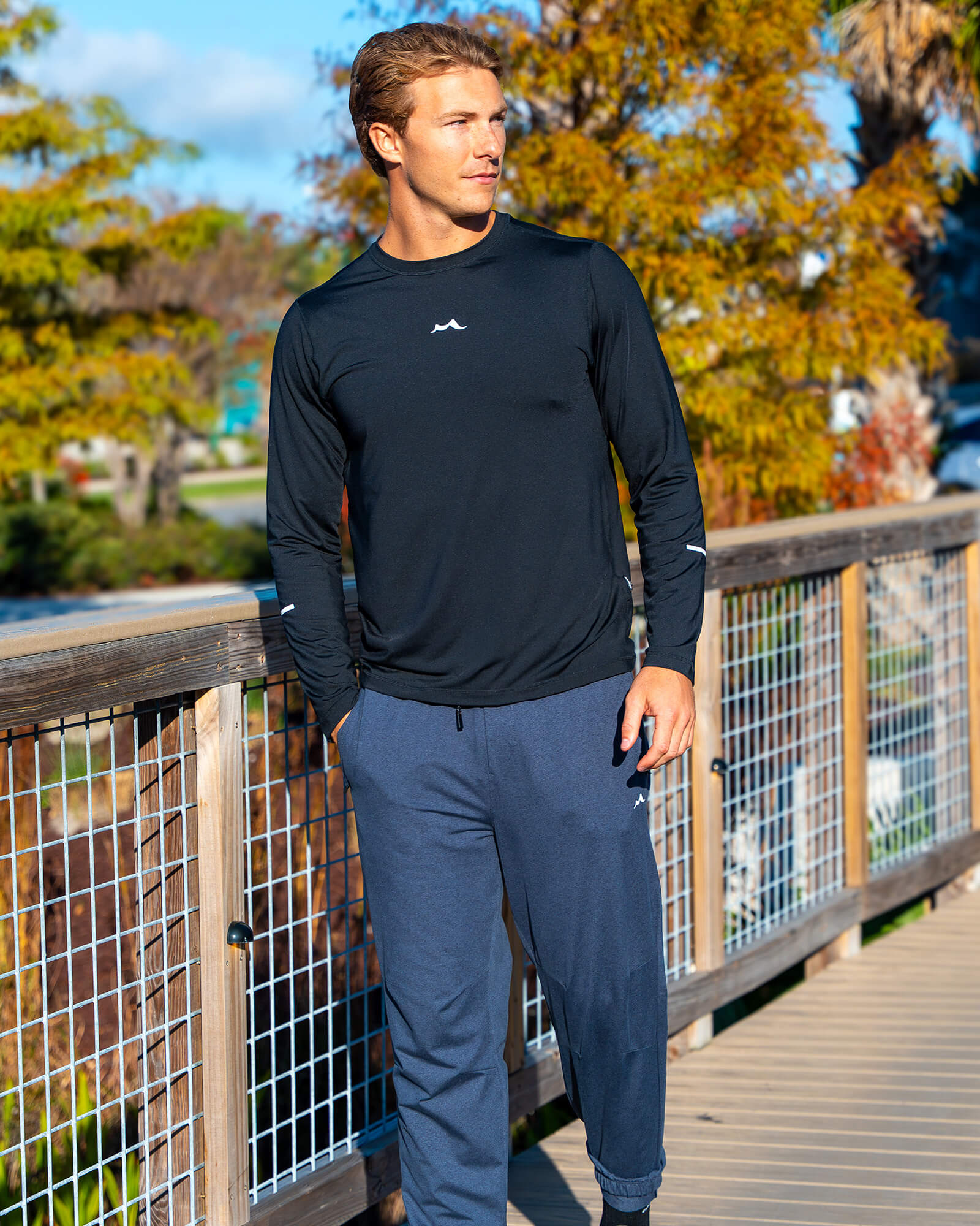 Wear the long-sleeve top with sweatpants. Ideal for cooler weather and outdoor activities.