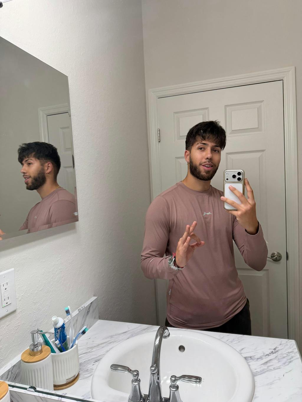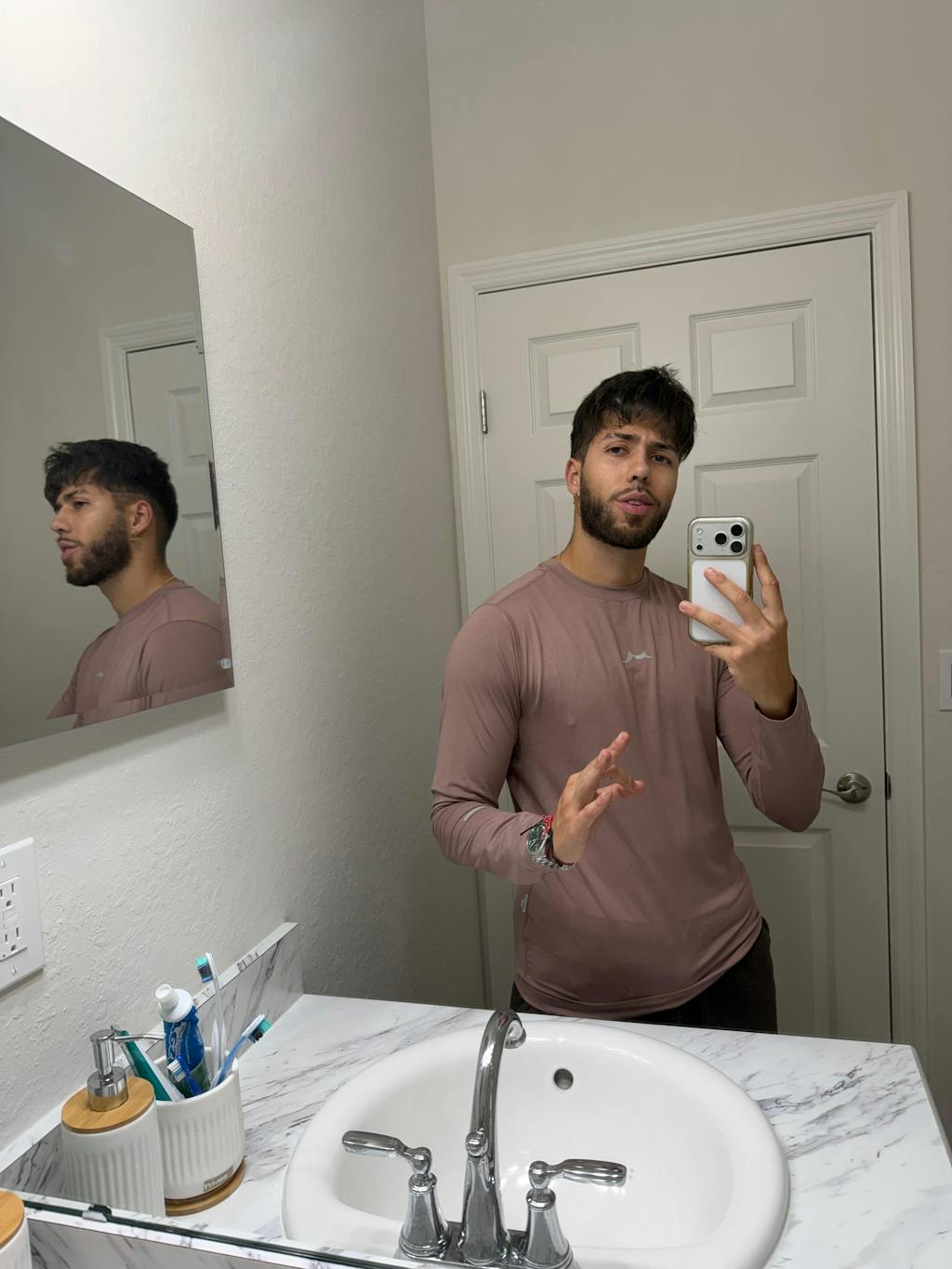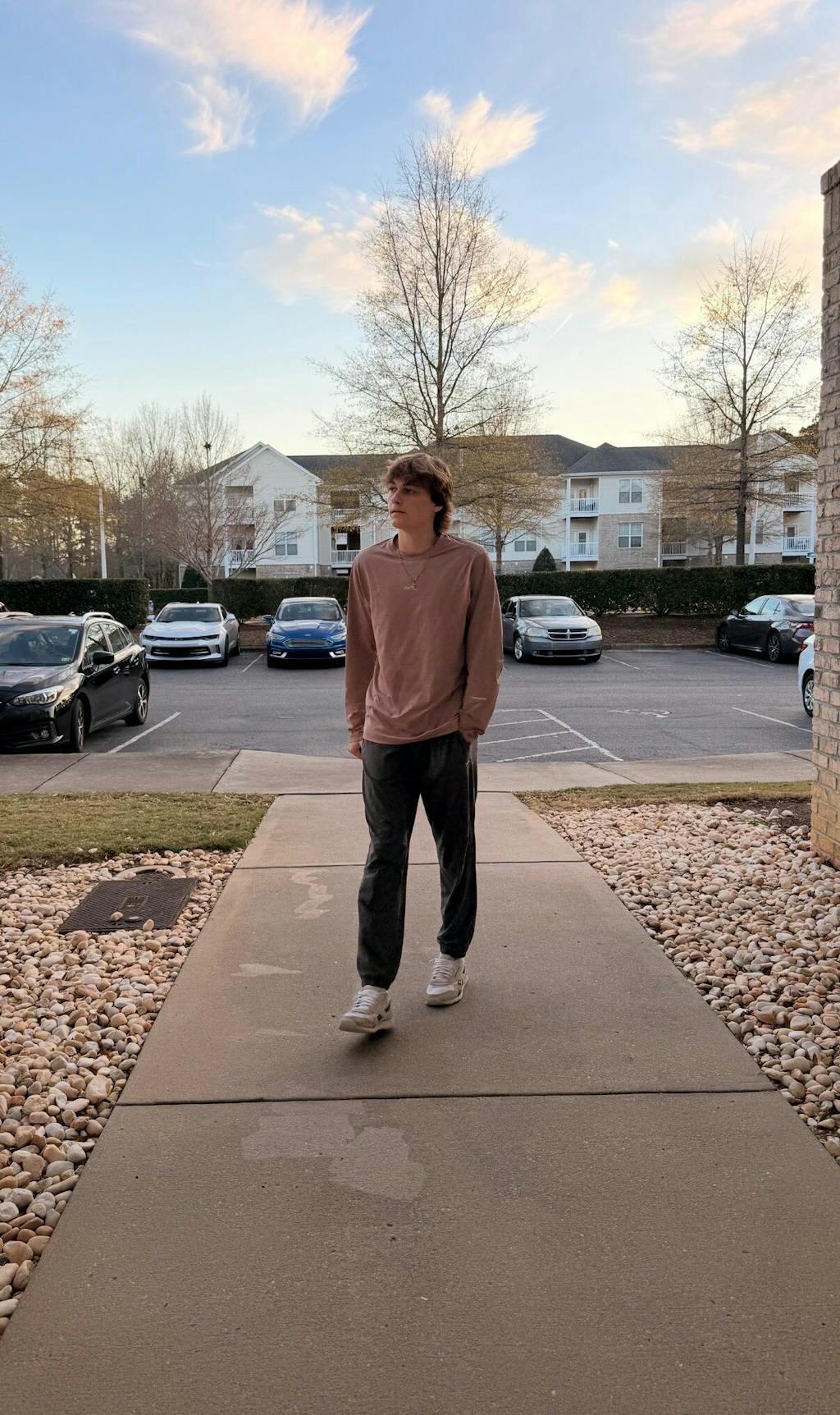 Wear the long-sleeve top with joggers. Ideal for cooler weather and outdoor activities.