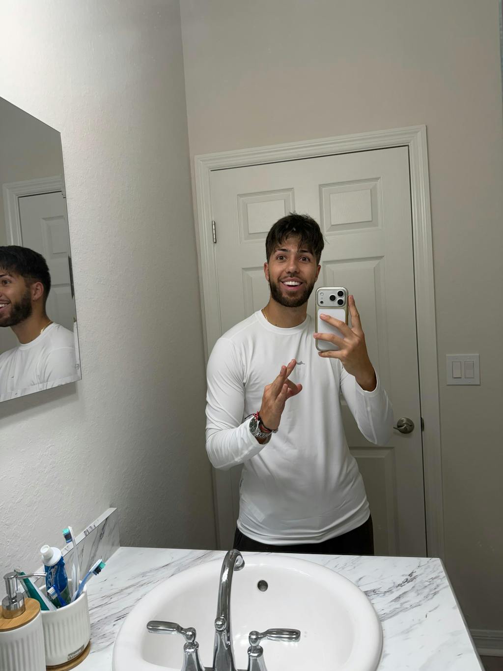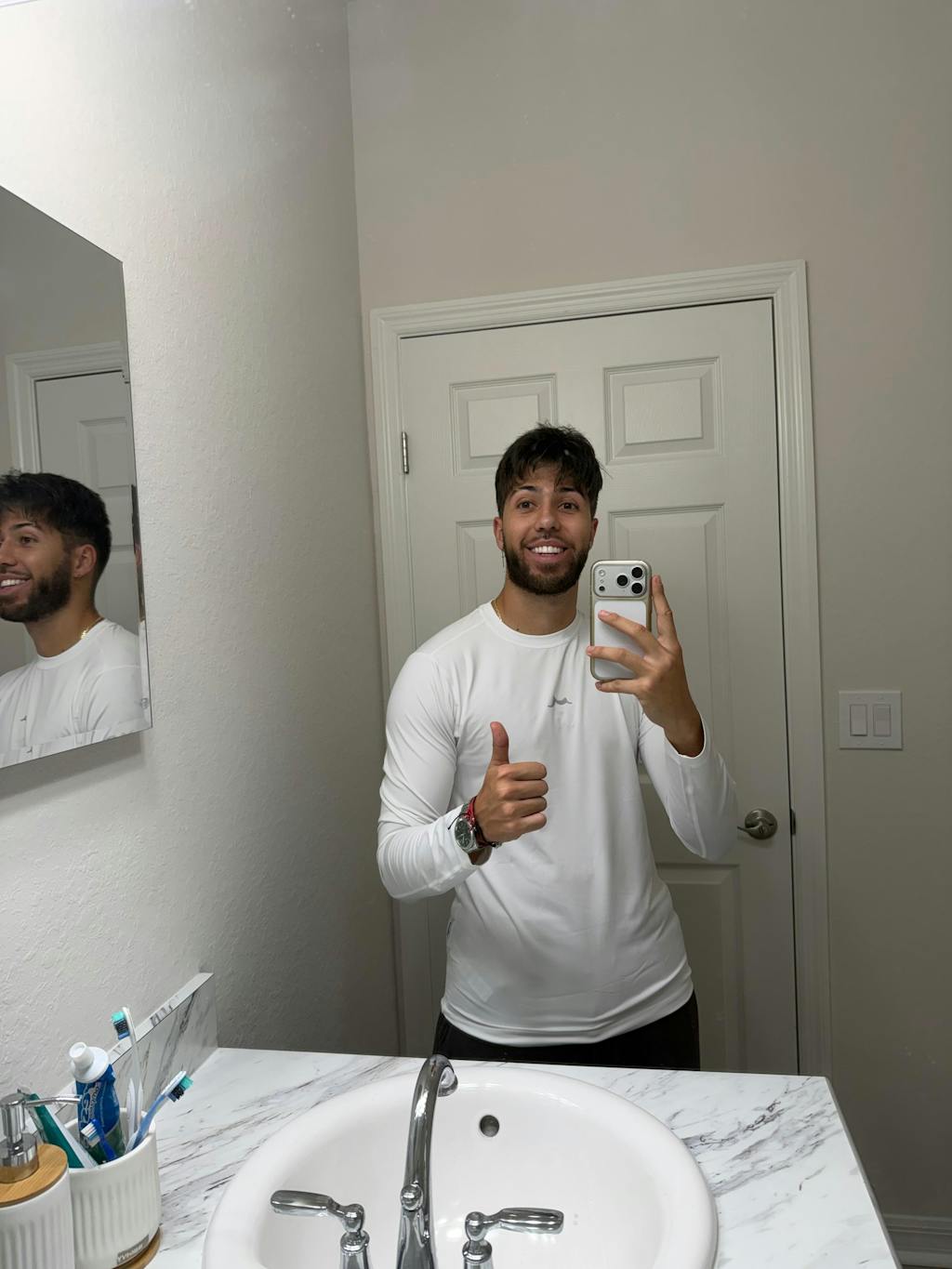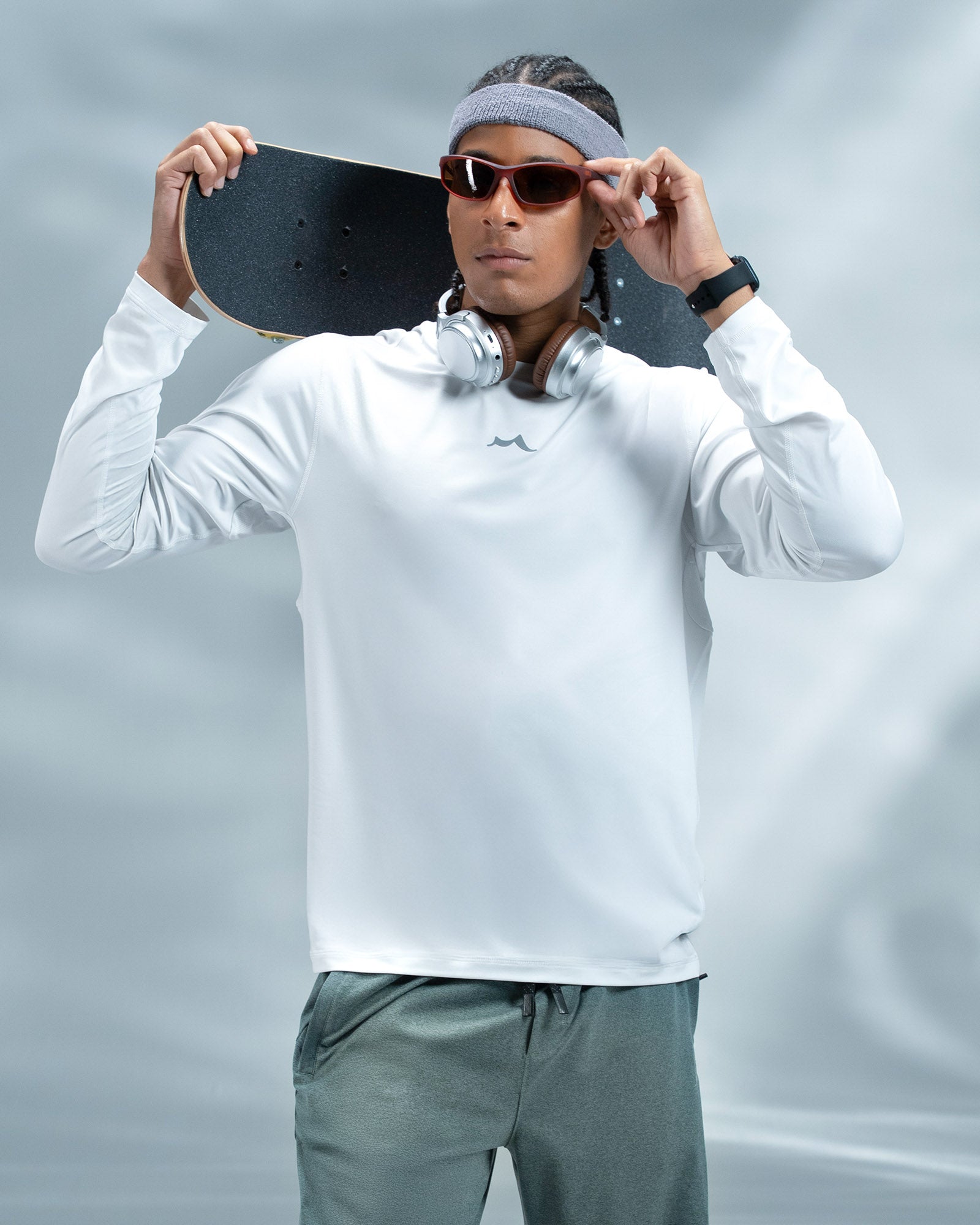 Wear the long-sleeve top with joggers. Ideal for cooler weather and outdoor activities.
